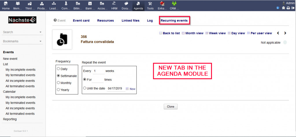 It allows you to generate recurring events on the agenda according to the chosen duplication criteria (eg every week until the end of the year)