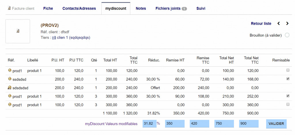Simplifie le calcul des remises globale au niveau des pièces de dolibarr (propal, commande, facture) en répartissant la remise globale (en %, TTC ou HT) en remise sur les lignes détaillées