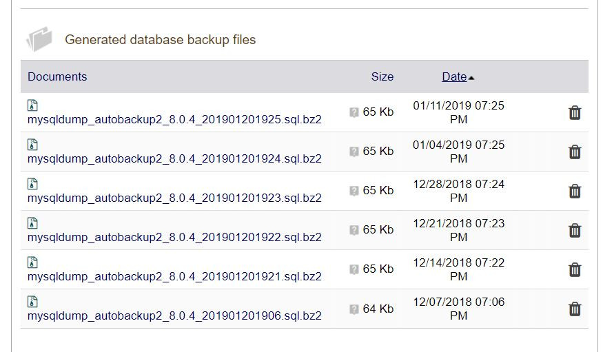 AutoBackup für Dolibarr. Sie können das Intervall einstellen. Die Sicherung kann auch automatisch an einen FTP-Server gesendet werden.