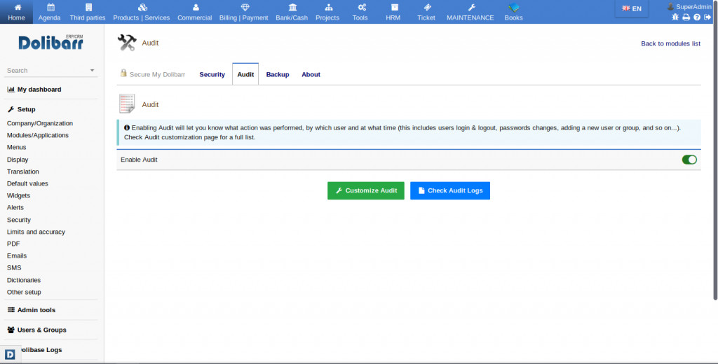 Vous aider à trouver et réparer tout problème de sécurité potentiel ou vulnérabilité sur votre système Dolibarr. Nouveau: fonctionnalité de contrôle/blocage d'accès des utilisateurs.