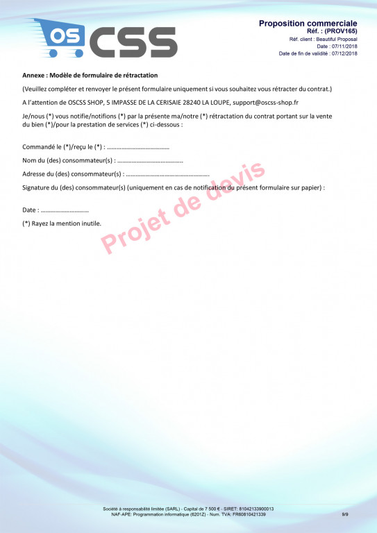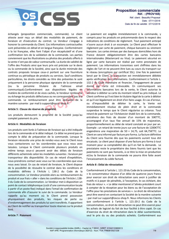 a PDF of general conditions of sale (on all propales)