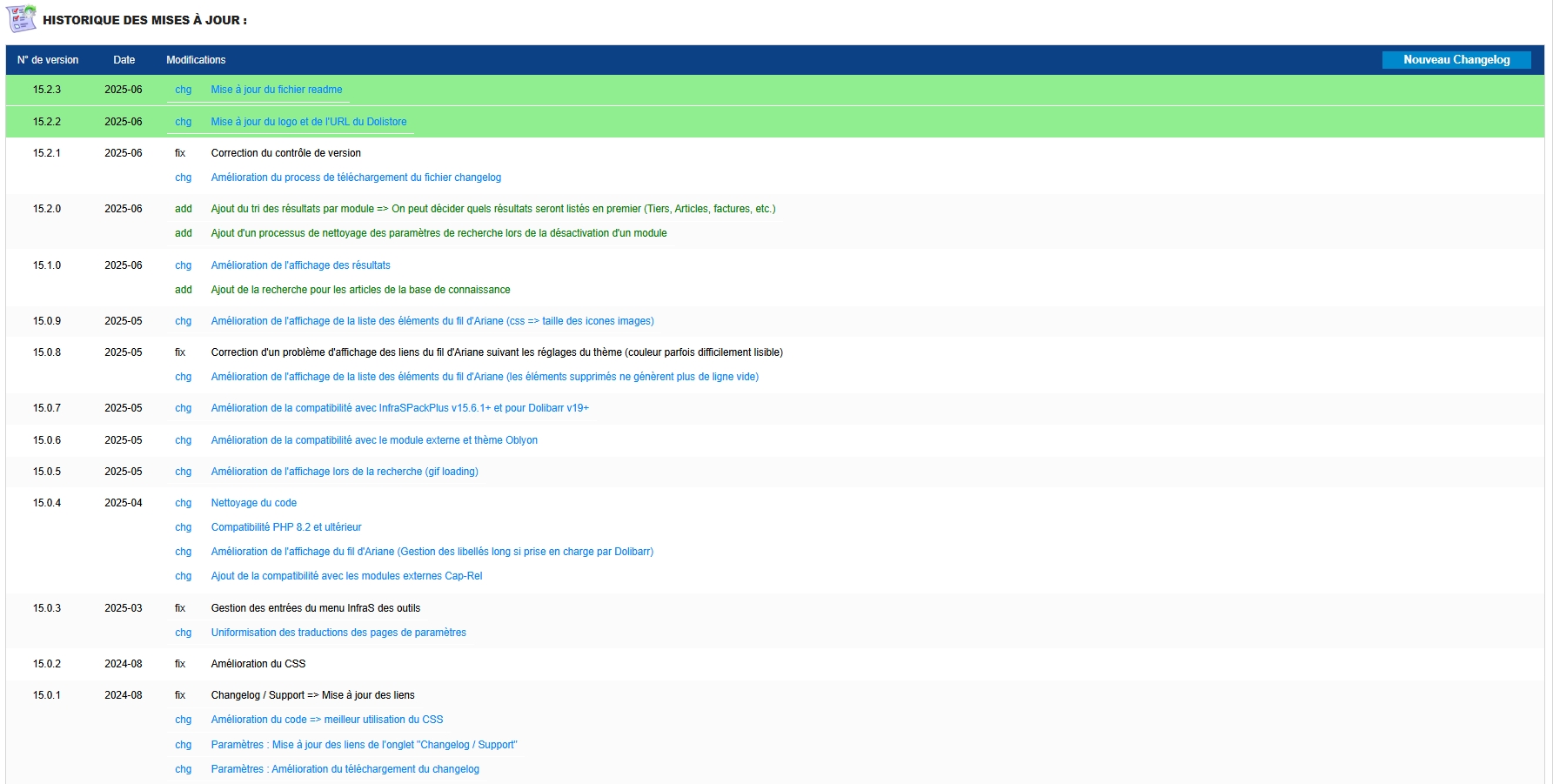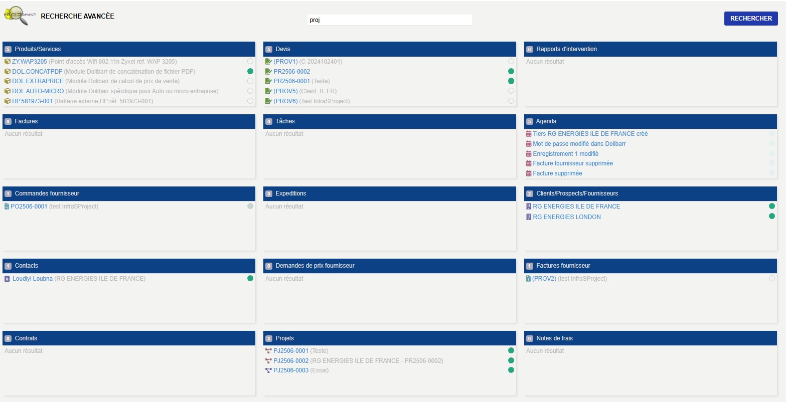 InfraS research enhances basic functions with features like breadcrumb navigation, comprehensive search including extra attributes, a results presentation page, direct links to selected items, and a complete replacement of the standard tool for better ergonomics.