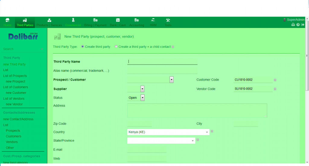 The Dayelin Summer Theme is the most modern skin created by Servicios Virtuales de Guatemala, S.A. In this sking you will find the green colors, which make dolibarr look more striking.