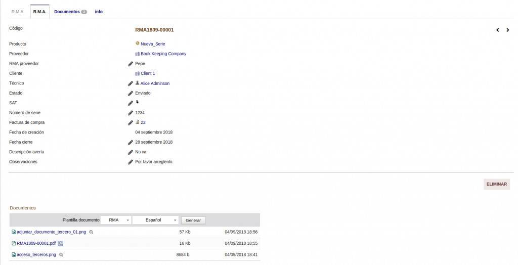 The SAT module will allow us to keep track of the products for maintenance and repair that we have sold to our customers. The RMA module will allow us to carry out a control with the supplier or manufacturer of the products that we have purchased, for the solution of the problems encountered or the return of the same.