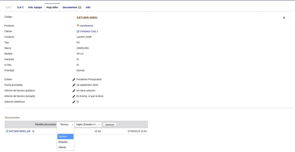 Le module SAT nous permettra de suivre les produits de maintenance et de réparation que nous avons vendus à nos clients. Le module RMA nous permettra d'effectuer un contrôle avec le fournisseur ou le fabricant des produits que nous avons achetés, pour la solution des problèmes rencontrés ou le retour de ceux-ci.