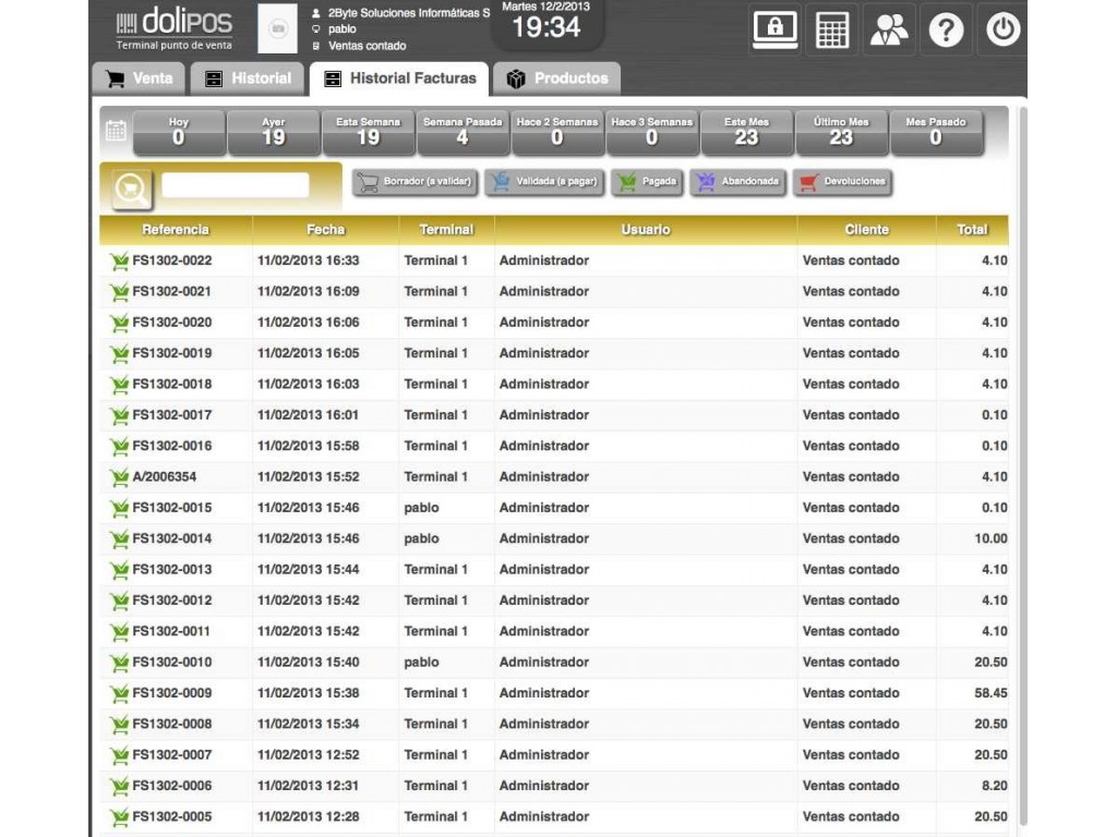 This module is a POS terminal or POS Professional, which provides sales on a counter with the public. With this unique system of point of sale, we can create all terminals (cash) needed, and manage with a single product, with unlimited users, and through the WEB.