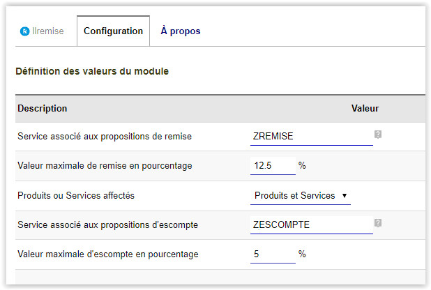 This module allows you to define percentage discounts on propals, orders, invoices. You can affect the document within three ways : all product or service lines, or second or third discount on bottom of document.