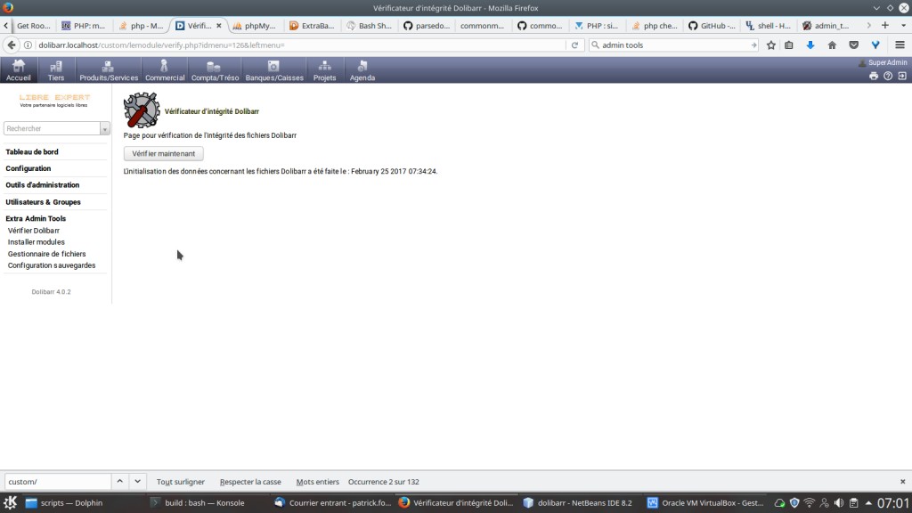 - un vérificateur d'intégrité de fichiers Dolibarr (pour garder un oeil sur les modifications)