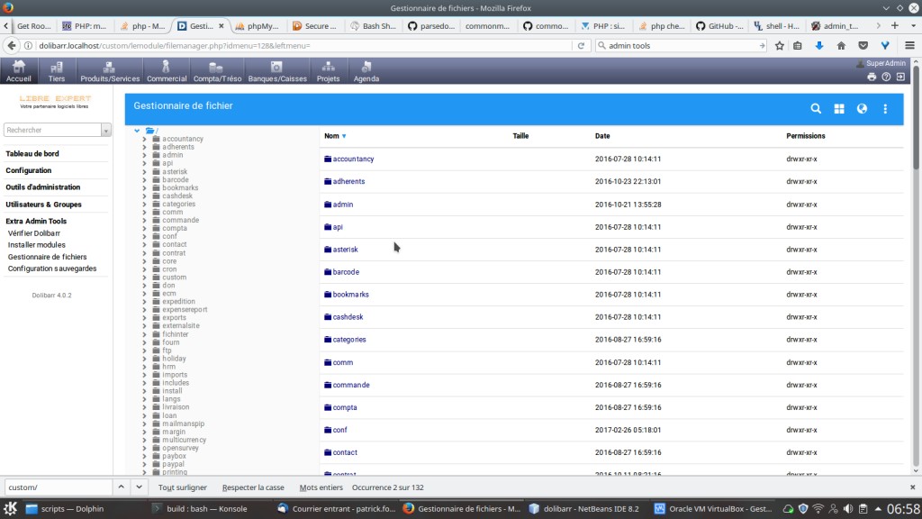 Ce module vous fournira des outils d'administration complémentaires pour Dolibarr en un seul package : Un installateur de modules facile, un gestionnaire de fichiers, un configurateur de sauvegardes, un gestionnaire de base de données et un vérificateur d'intégrité des fichiers Dolibarr