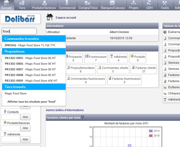 Avec ce module, vous pouvez rechercher tous ce dont vous avez besoin avec un seul champ de recherche, rapidement et en temps réels ! Vous pouvez rechercher par nom, référence, montant etc..