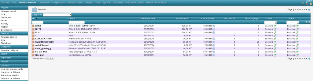 Better display of big list in Dolibarr : choose the number of elements to display in a list, otherwise add a fixed header (which stay visible on scrolling) or with the dataTable jQuery plugin (see screenshots) with export options to Excel, Pdf, clipboard and print in one click.