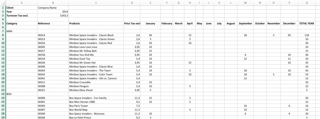 3) NEW in 1.0 : Export an XLS file of your customer’s orders with all the total of sales made in a specific year, sorted by product and months.