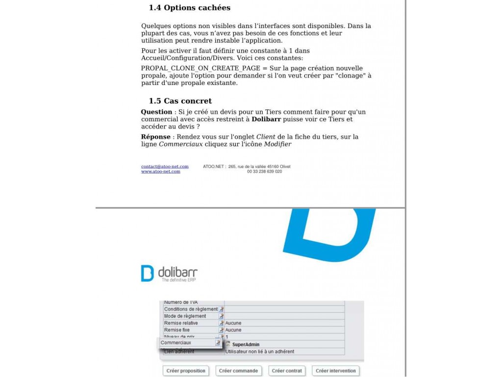 WARNING: This is not a final version, this guide (pdf format, 175 pages) is constantly updated, therefore we recommend that you wear your attention to the new versions that follow the evolution of Dolibarr and will be available to users of doliforge.