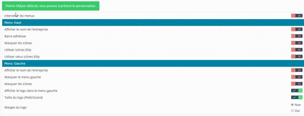 Activate the Oblyon configurator in the modules list. Oblyon menus and theme are selectionned automatically.