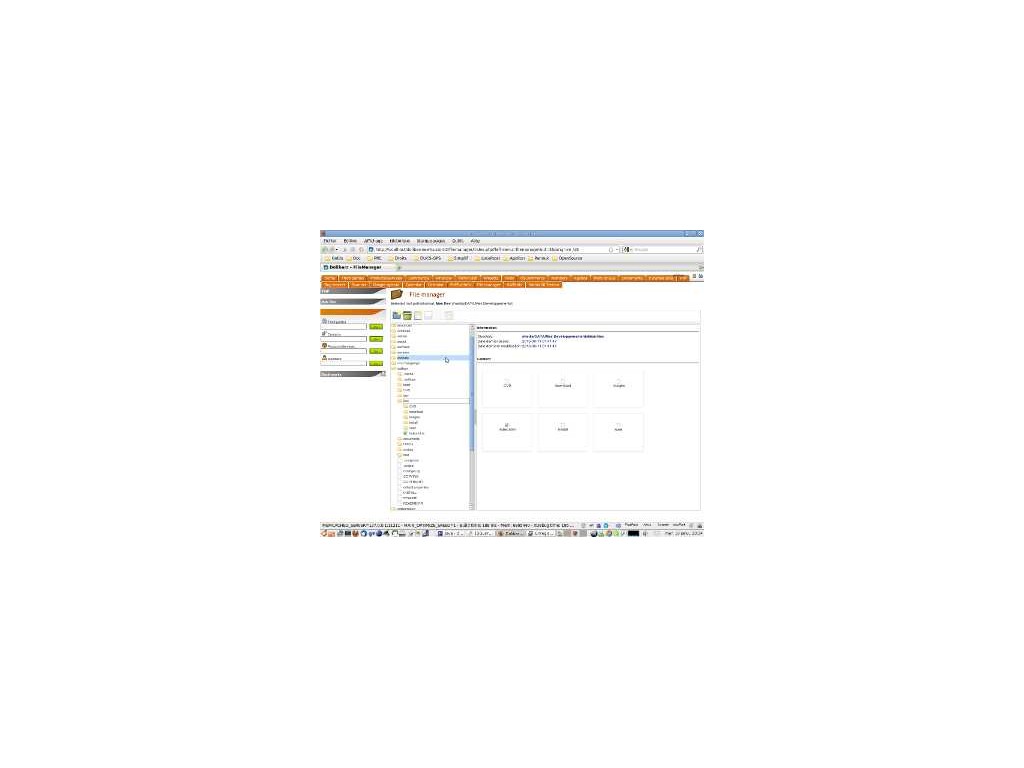 Ce module ajoute une entrée "Gestionnaire de fichier" dans le menu du haut qui vous permet de naviguer dans tout répertoire pour lequel votre serveur PHP est autorisé. Vous pouvez aussi lister et télécharger tout fichier. Les fichiers textes peuvent aussi être modifiés.