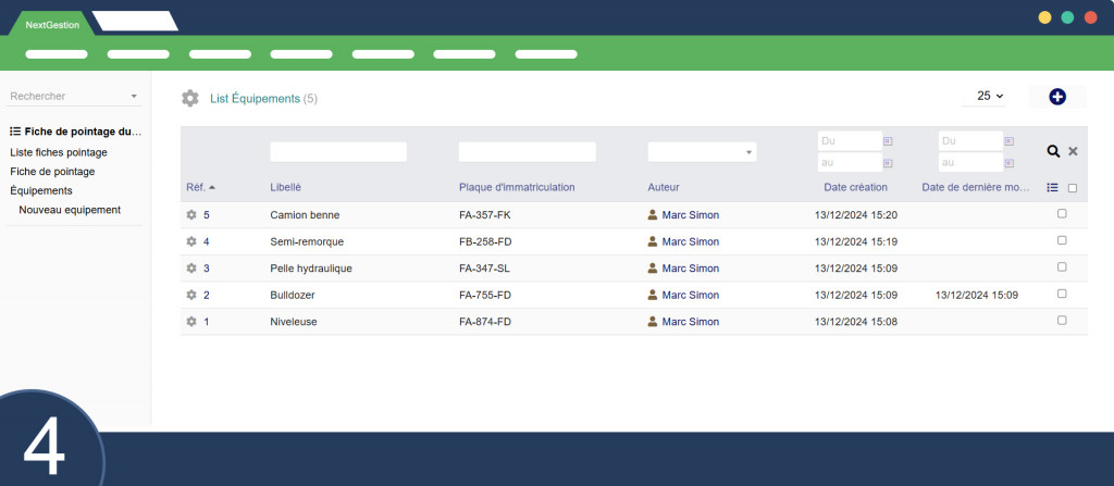 The “Equipment Time Tracking” module in Dolibarr enables daily tracking of rental equipment usage, particularly in industrial or construction project contexts. This module facilitates the entry, monitoring, and management of equipment work hours and drivers while allowing detailed analysis of equipment performance and fuel consumption.