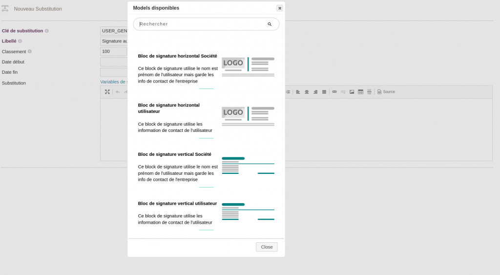 Enhance your communications with advanced substitution keys, enabling centralized and automated email templates. Create temporary messages (closures, promotions, events) and enjoy professional, stylish email signatures to boost your brand image. Simple, flexible, and powerful, this module is a must-have for impactful and always up-to-date emails.