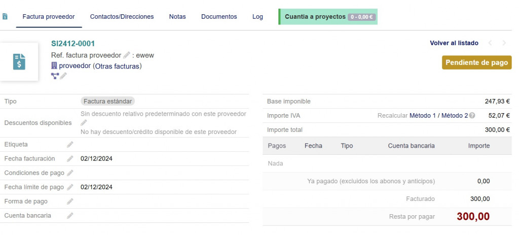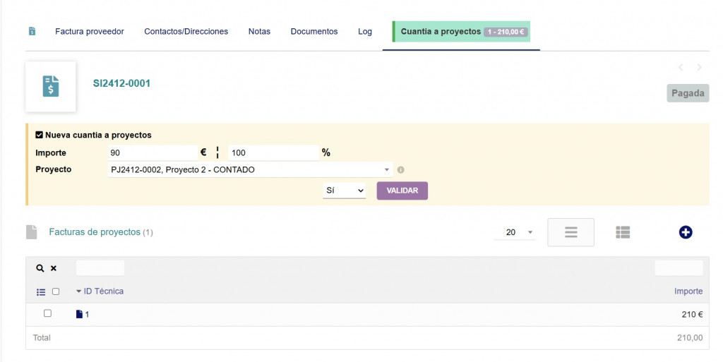 The module automatically updates the financial summary of the projects, displaying the amounts assigned from supplier invoices. This makes it easier to track costs associated with each project.