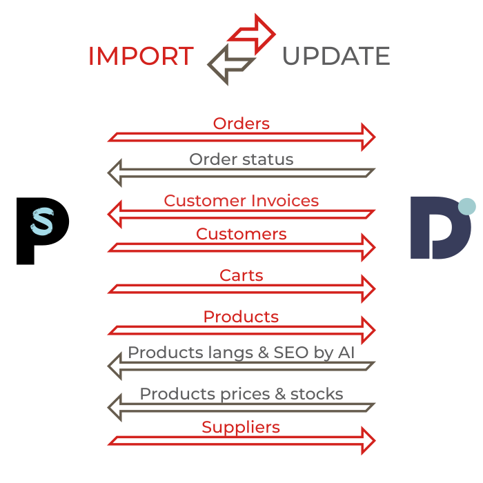 Presta Doli Sync, the E-commerce Connector Between Dolibarr & Prestashop Presta Doli Sync is a synchronization module between Prestashop and Dolibarr, designed to simplify the management of products, orders, customers, and inventory across these two platforms.