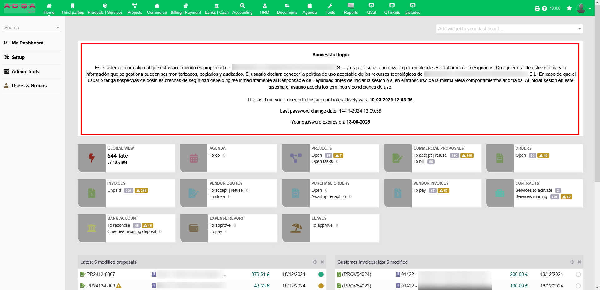 Conformità a ISO 27001, NIS2, al Quadro Nazionale di Sicurezza (ENS) e ad altri standard internazionali su Dolibarr