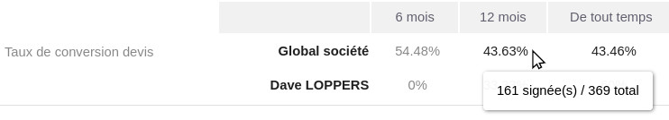 Optimize your quote management with the Conversion View module, designed to enhance productivity and the performance of your sales teams. This module allows you to quickly access the conversion rates of quotes for a specific client or contact directly from the quotes page in Dolibarr.