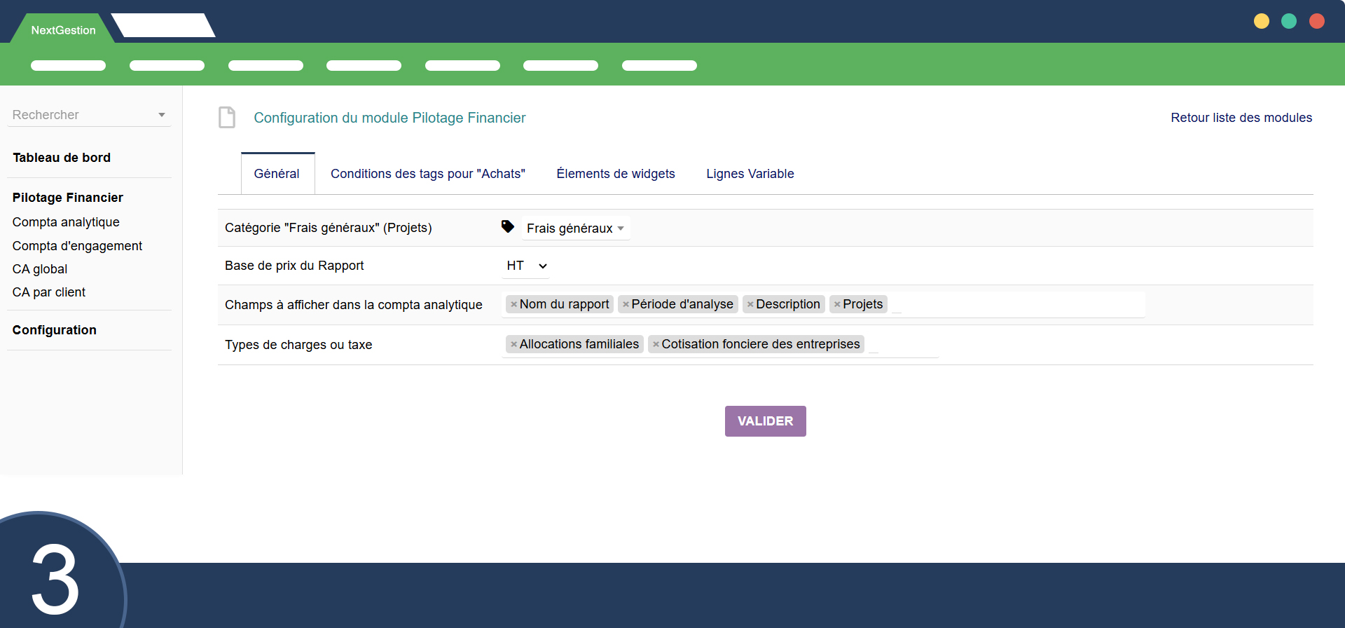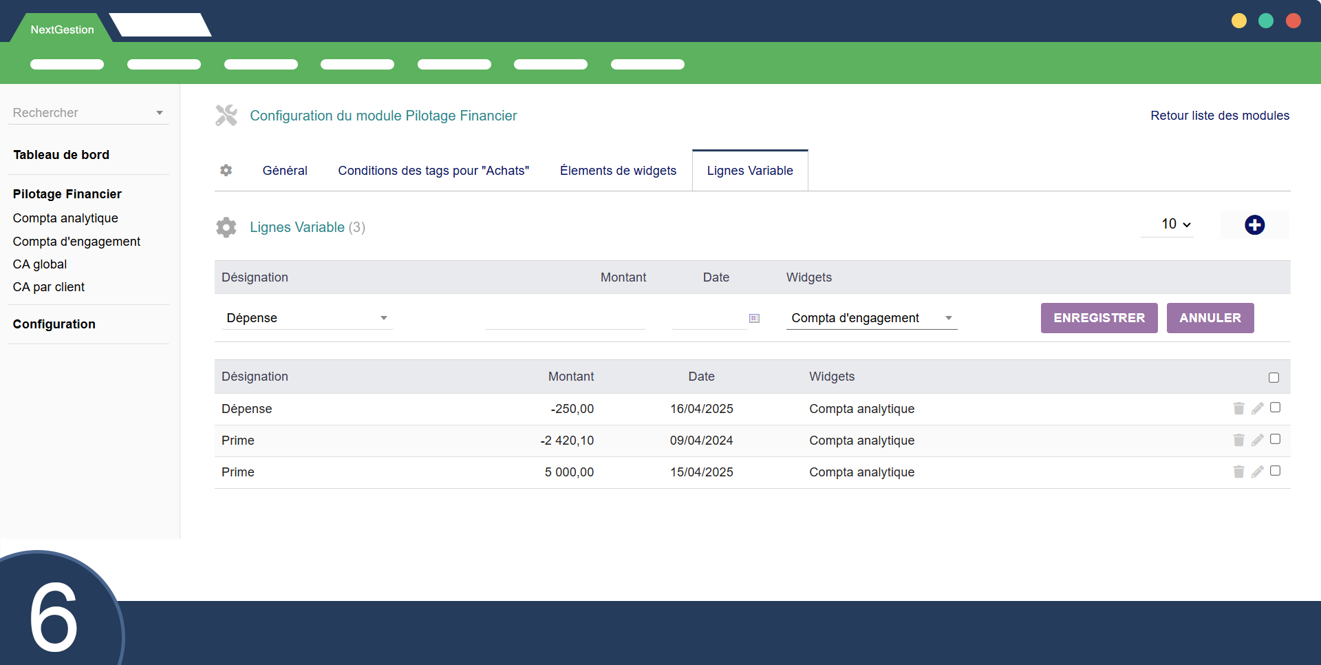 These settings allow companies to tailor the module to their specific financial tracking needs.