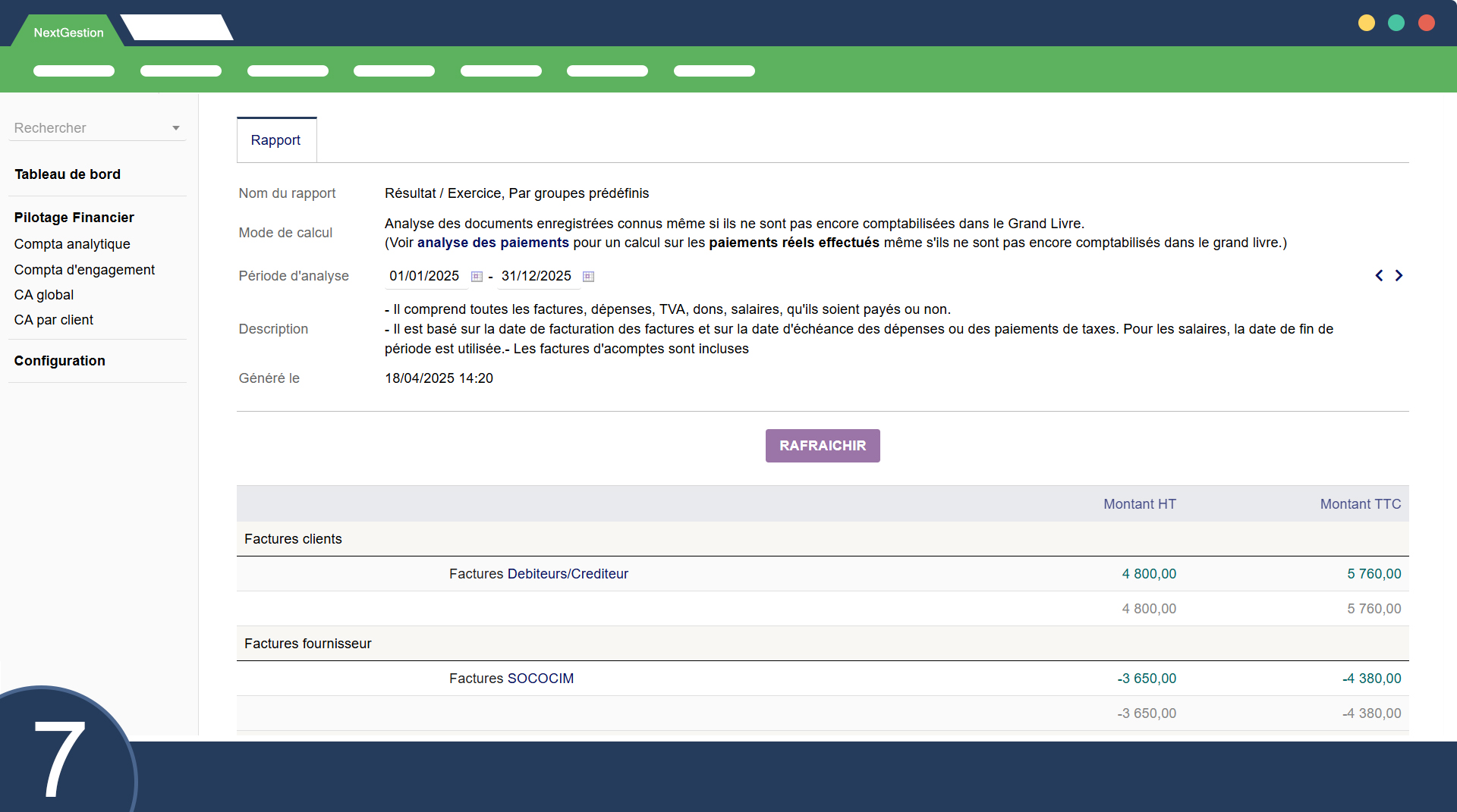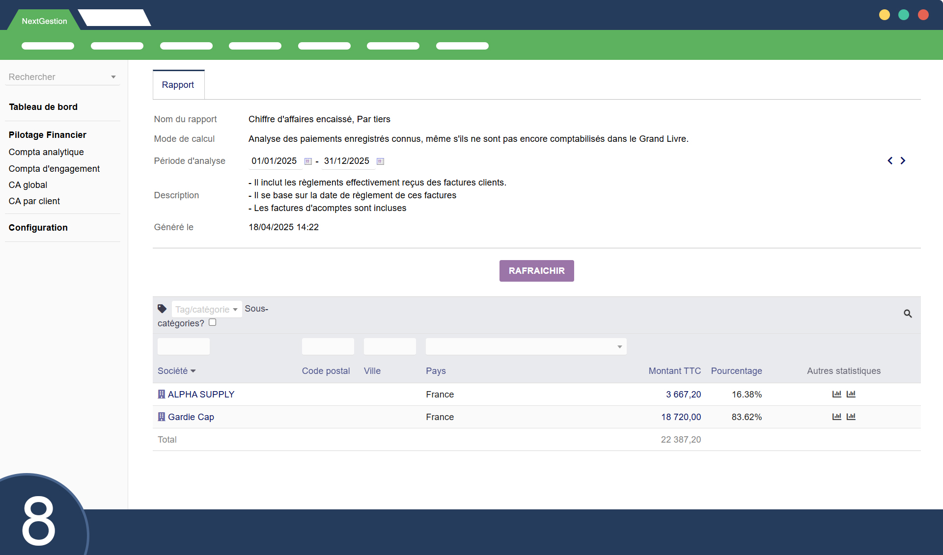 Dolibarr's Financial Management module offers several key features for effective management of the company's financial and commercial performance. Here is a description of the features: