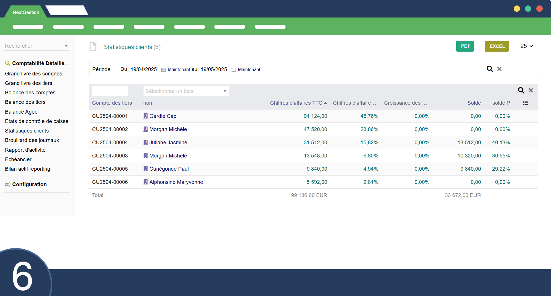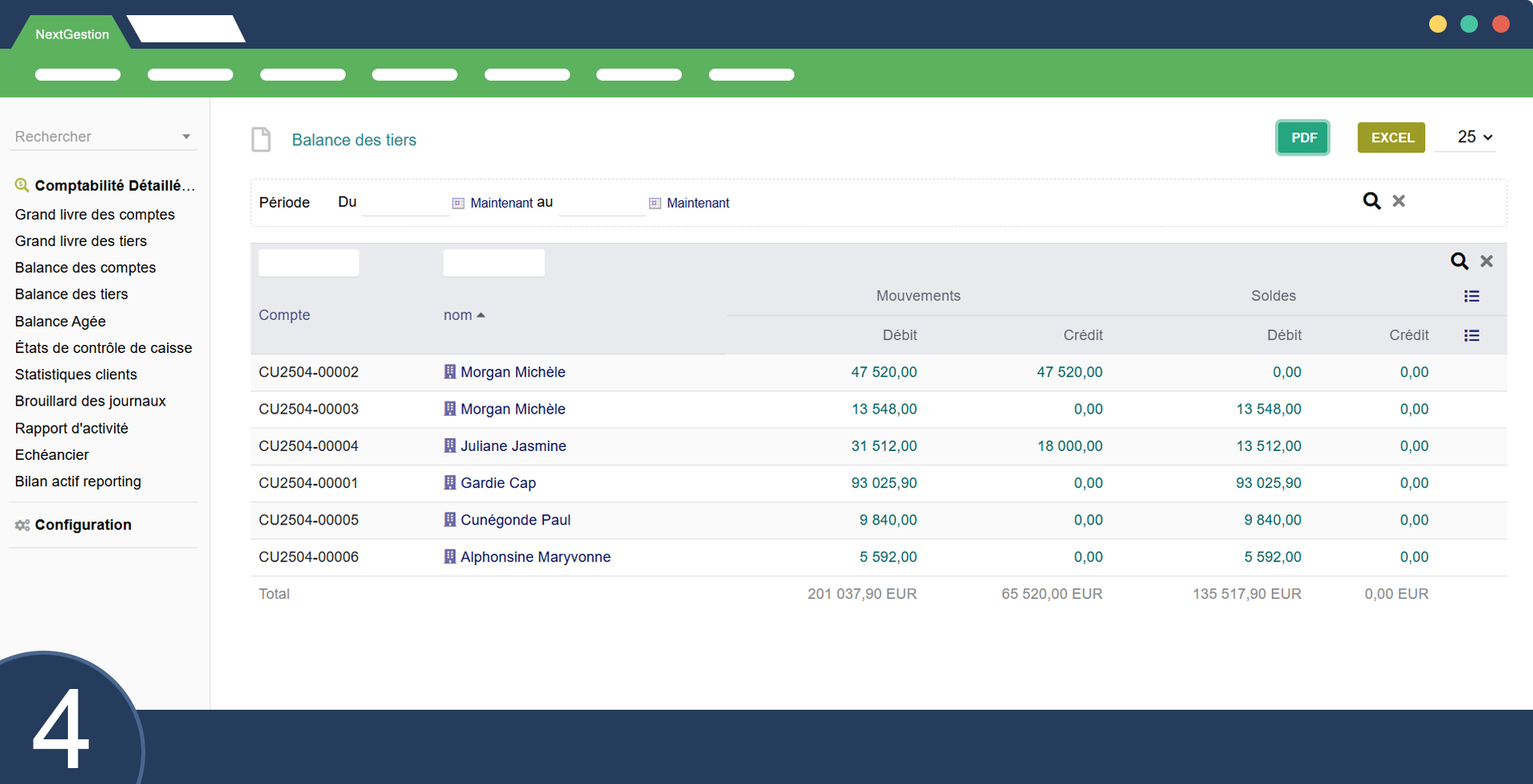 Il Modulo di Contabilità Dettagliata Sage di NextGestion è una soluzione contabile completa, progettata per soddisfare i più alti standard professionali. Ispirato alla logica e alla struttura del software Sage, consente una gestione finanziaria centralizzata e precisa, garantendo tracciabilità, trasparenza ed efficienza decisionale. Grazie a un'interfaccia chiara, report dinamici e strumenti avanzati di analisi, questo modulo permette alle aziende di monitorare la propria salute finanziaria in tempo reale, generando al contempo report conformi alle normative contabili e fiscali. Menu Funzionale e Funzionalità Dettagliate✅ 1. Libro mastro generaleVisualizza tutte le scritture contabili ordinate per conti generali, inclusi data, diario, numero del documento, descrizione e saldo. Le scritture possono essere filtrate per periodo, conto o etichetta, ed esportate in PDF o Excel. ✅ 2. Libro mastro dei terziConsente di consultare tutte le registrazioni contabili relative ai terzi (clienti e fornitori), con dettagli su addebiti, accrediti e saldi raggruppati per partner. ✅ 3. Bilancio dei contiRiepiloga i saldi debitori e creditori per ogni conto, con i movimenti registrati in un determinato periodo. Questo riepilogo aiuta a garantire l'equilibrio della contabilità. ✅ 4. Bilancio dei terziOffre una visione consolidata dei saldi di clienti e fornitori tramite i conti di terzi. Essenziale per la gestione dei crediti e dei debiti. ✅ 5. Bilancio ScadenzatoMostra la distribuzione di crediti e debiti in base alla scadenza (corrente, 30, 60, 90+ giorni). Fondamentale per valutare il rischio di insolvenza e il comportamento dei pagamenti. ✅ 6. Stato di controllo della cassaTraccia i flussi di cassa giornalieri, comprese entrate, uscite, saldi iniziali e finali. Ideale per il riconcilio bancario e la gestione quotidiana della liquidità. ✅ 7. Statistiche clientiGenera indicatori dettagliati sul fatturato clienti, saldi aperti, tendenze di acquisto e tassi di crescita. Aiuta a identificare i clienti strategici e guidare le strategie commerciali. ✅ 8. Bozze dei registri contabiliElenca le scritture contabili in attesa di convalida, prima che vengano contabilizzate in via definitiva. Funziona come uno spazio di pre-verifica per migliorare il controllo dei dati inseriti. ✅ 9. Rapporti di attivitàConsente di generare rapporti sintetici sulle attività contabili complessive: importi totali, frequenze e tipi di scrittura. Offre una visione macro dell’andamento economico aziendale. ✅ 10. ScadenziarioElenca tutte le scadenze di pagamento future o arretrate, raggruppate per terzi o documenti. Uno strumento essenziale per il monitoraggio dei pagamenti e per inviare solleciti. ✅ 11. Report attivo patrimonialeGenera un report chiaro degli attivi contabili (clienti, inventari, immobilizzazioni, ecc.), offrendo una visione concisa della situazione patrimoniale e della redditività aziendale.