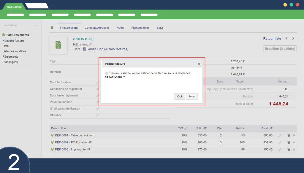 Das Quick Invoicing-Modul von Dolibarr soll die Erstellung von Rechnungen vereinfachen und beschleunigen. Unter Umgehung des Standardprozesses können Benutzer Rechnungen mit nur wenigen Klicks über die Schnittstelle „Neue Rechnung“ erstellen. Hier sind die Hauptmerkmale: