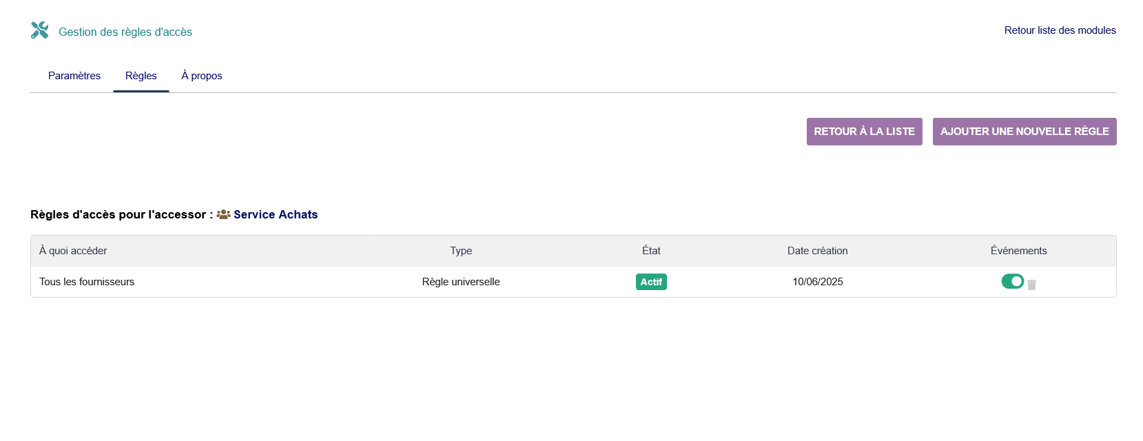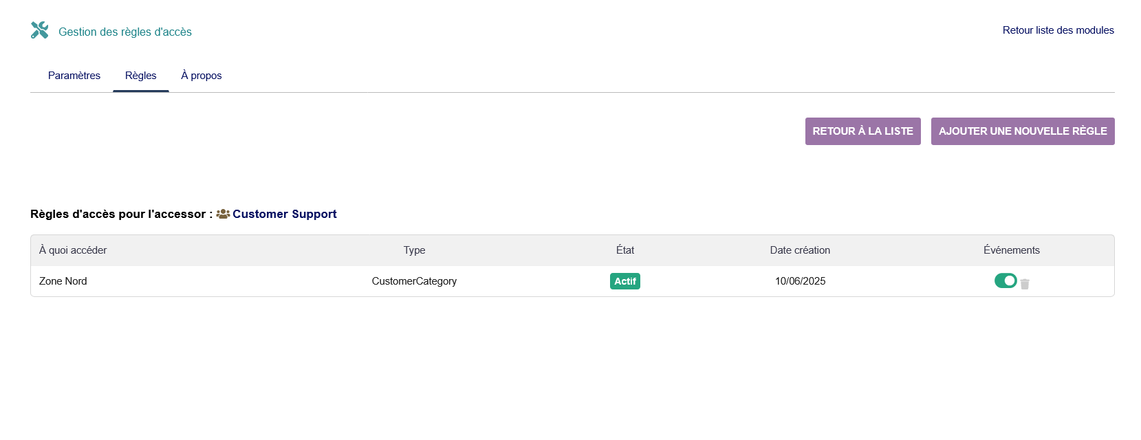 Create Access Rules that define WHO (users, user groups) can access WHAT (specific third-parties, categories, or universal access). The module automatically applies these rules across all third-party pages.