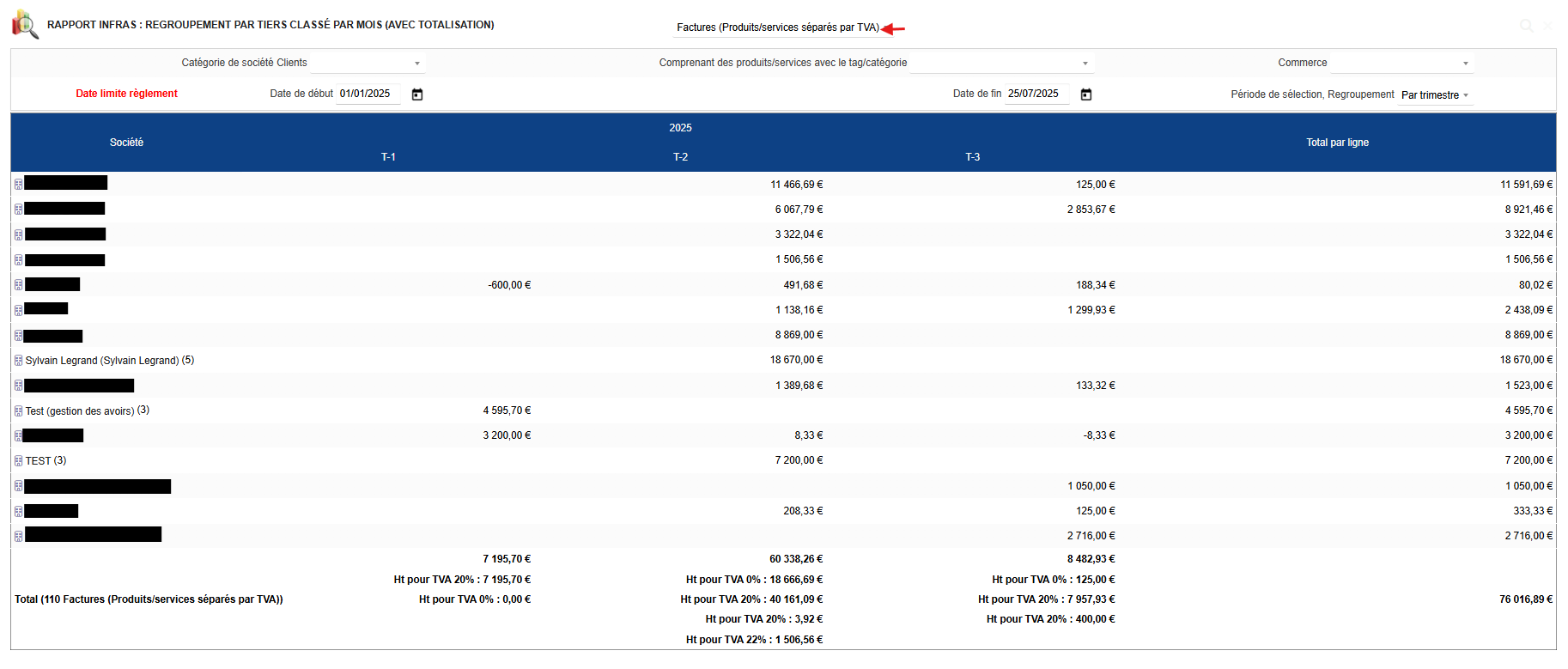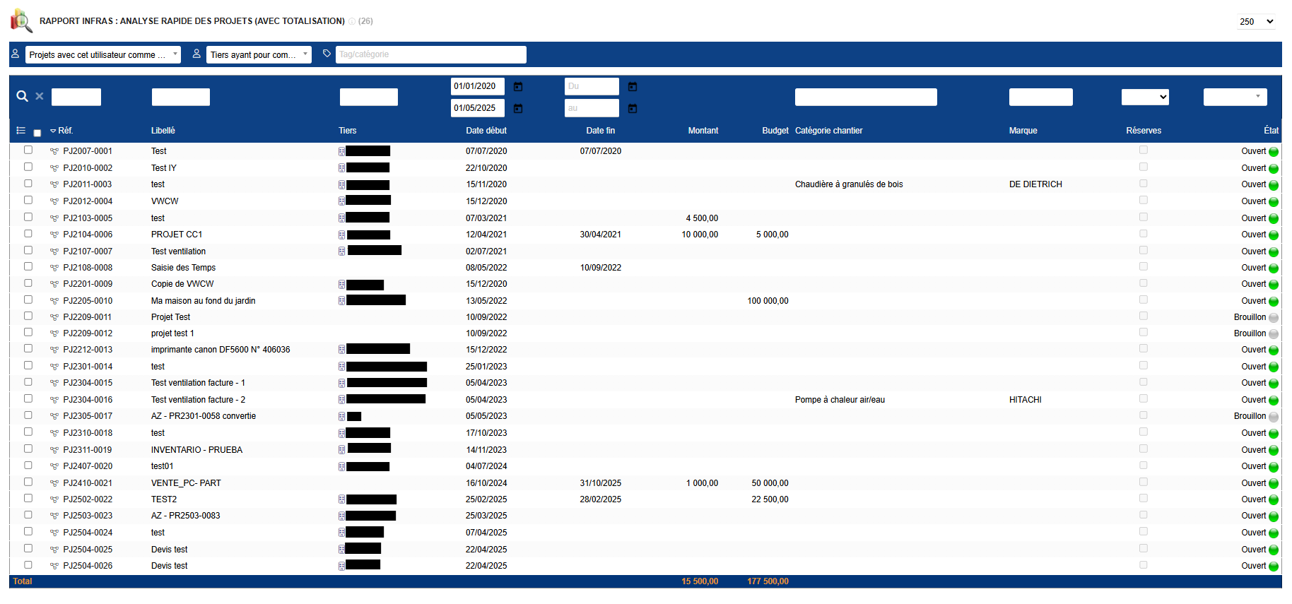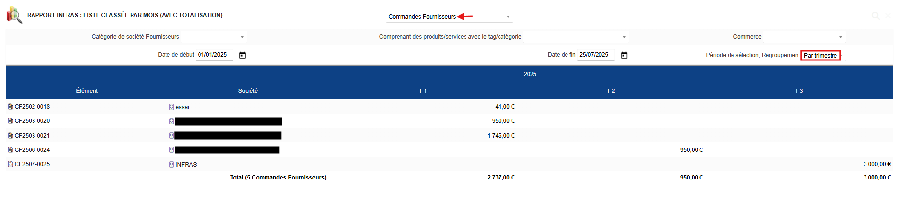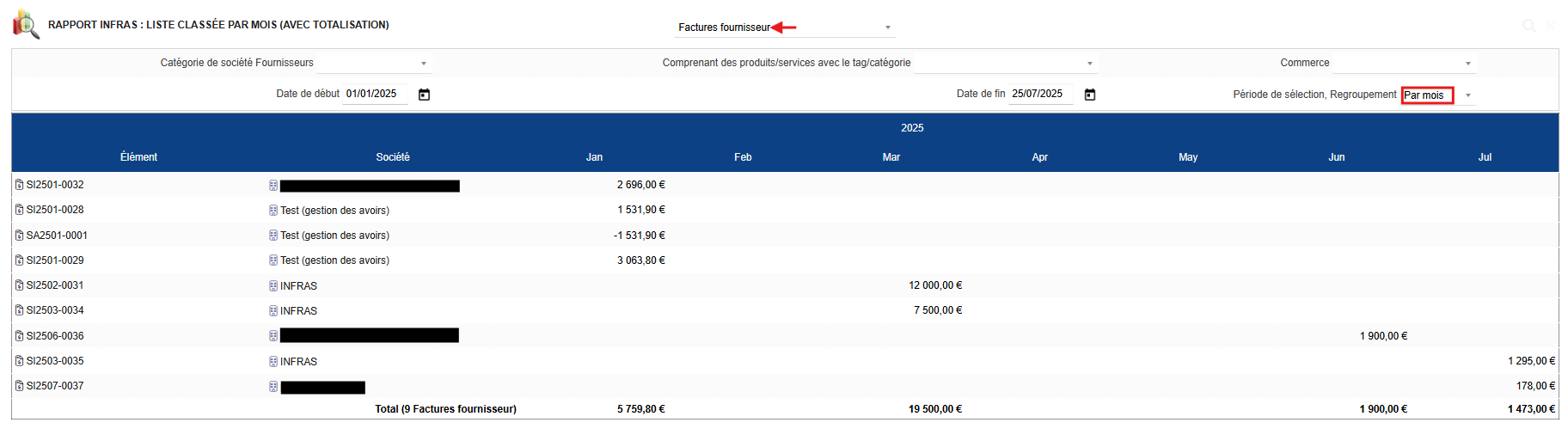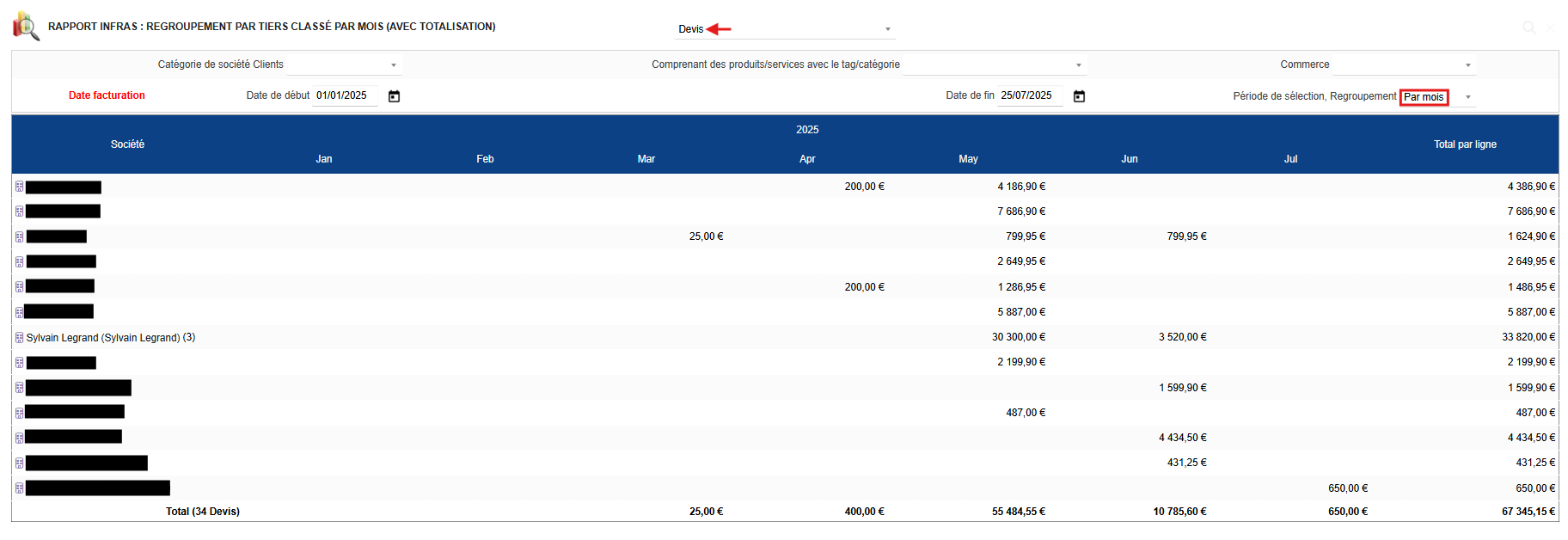 Le modules Infrasreports simplifie l’analyse des données financières de Dolibarr. Bénéficiez de rapports supplémentaires comme le regroupement par mois et par tiers des éléments financiers et commerciaux (Devis, Commandes, Factures, etc...) ou une analyse des projets comprenant les marges, le reste à facturer, le temps consommé, etc... De nouveaux rapports sont à venir ...