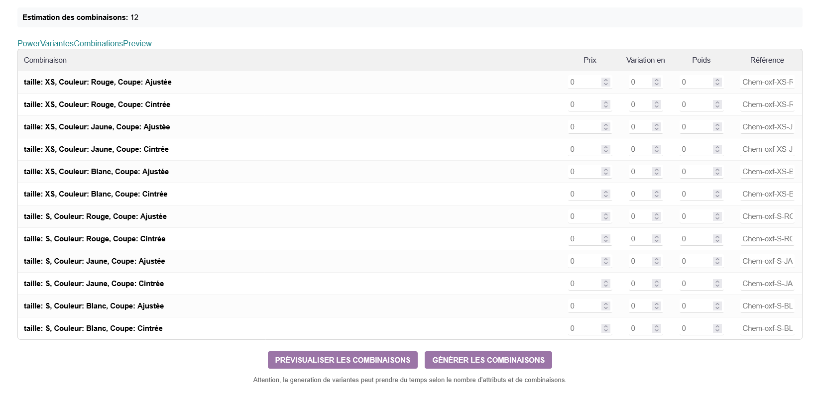 Power Variantes - genera centinaia di varianti di prodotti in secondi con pochi clic.