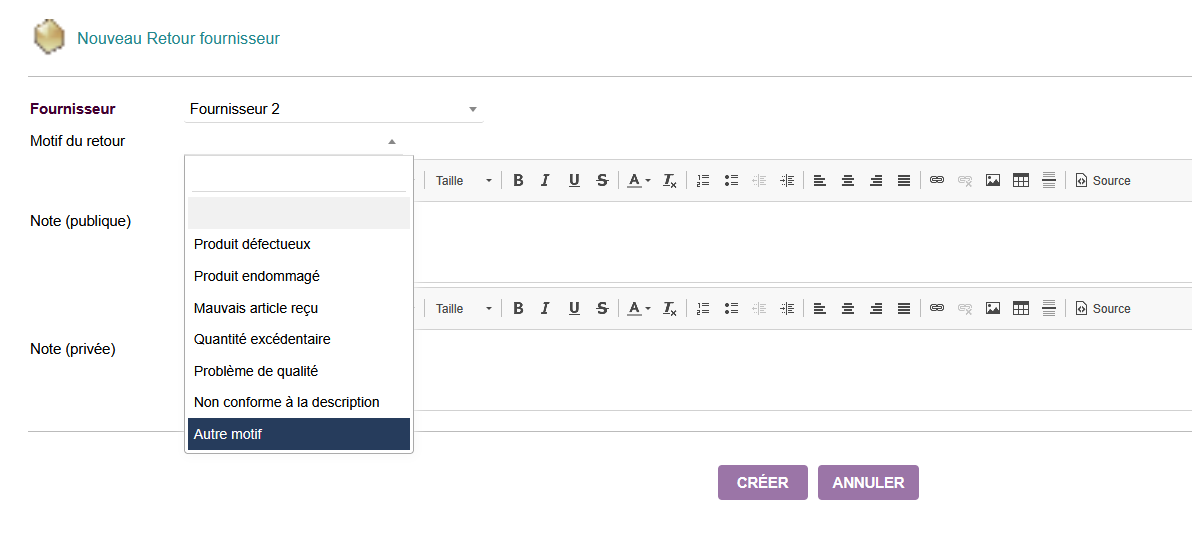 Gérez efficacement vos retours de marchandises aux fournisseurs avec ce module complet qui s'intègre parfaitement dans votre workflow Dolibarr.