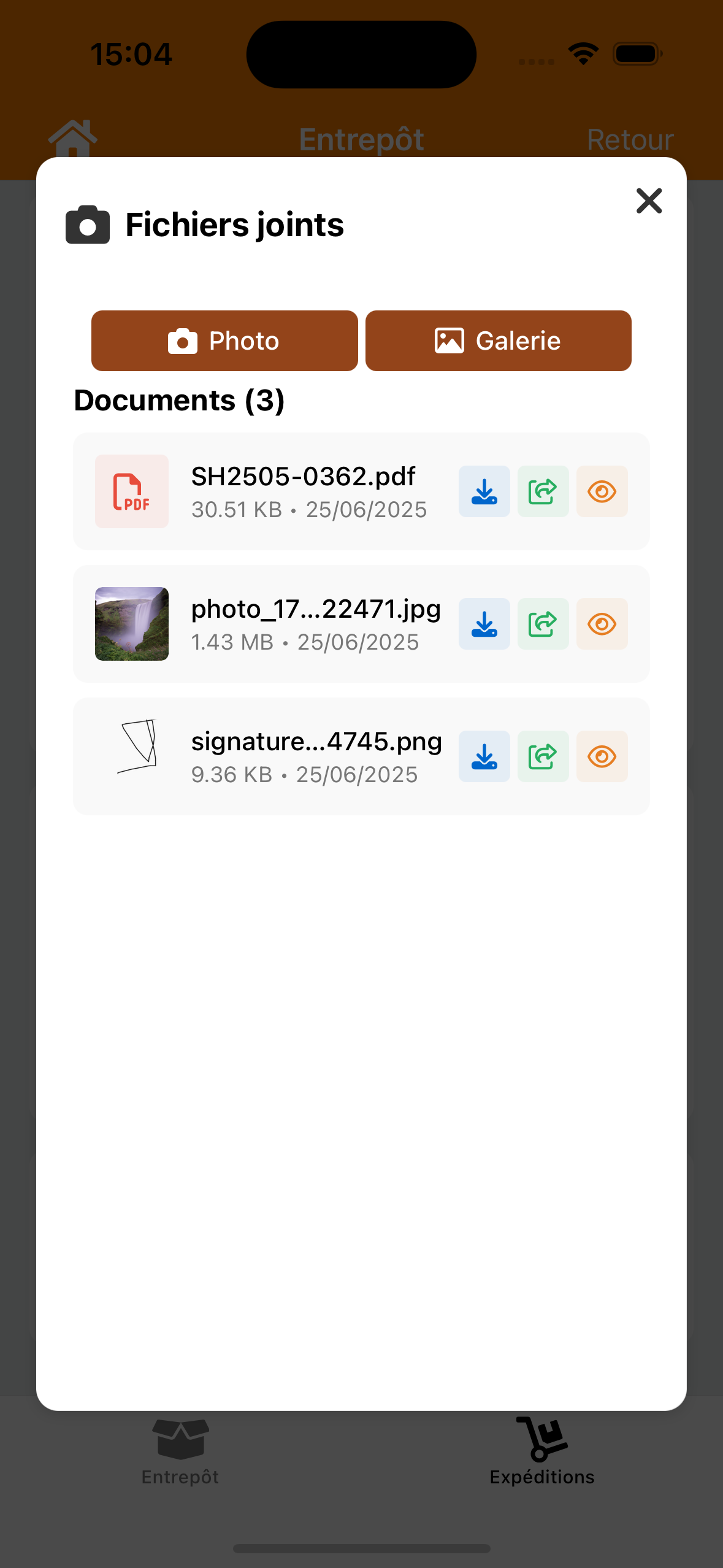 Event/Calendar management associated with items. Electronic signature of interventions and shipments. Management of documents associated with items.