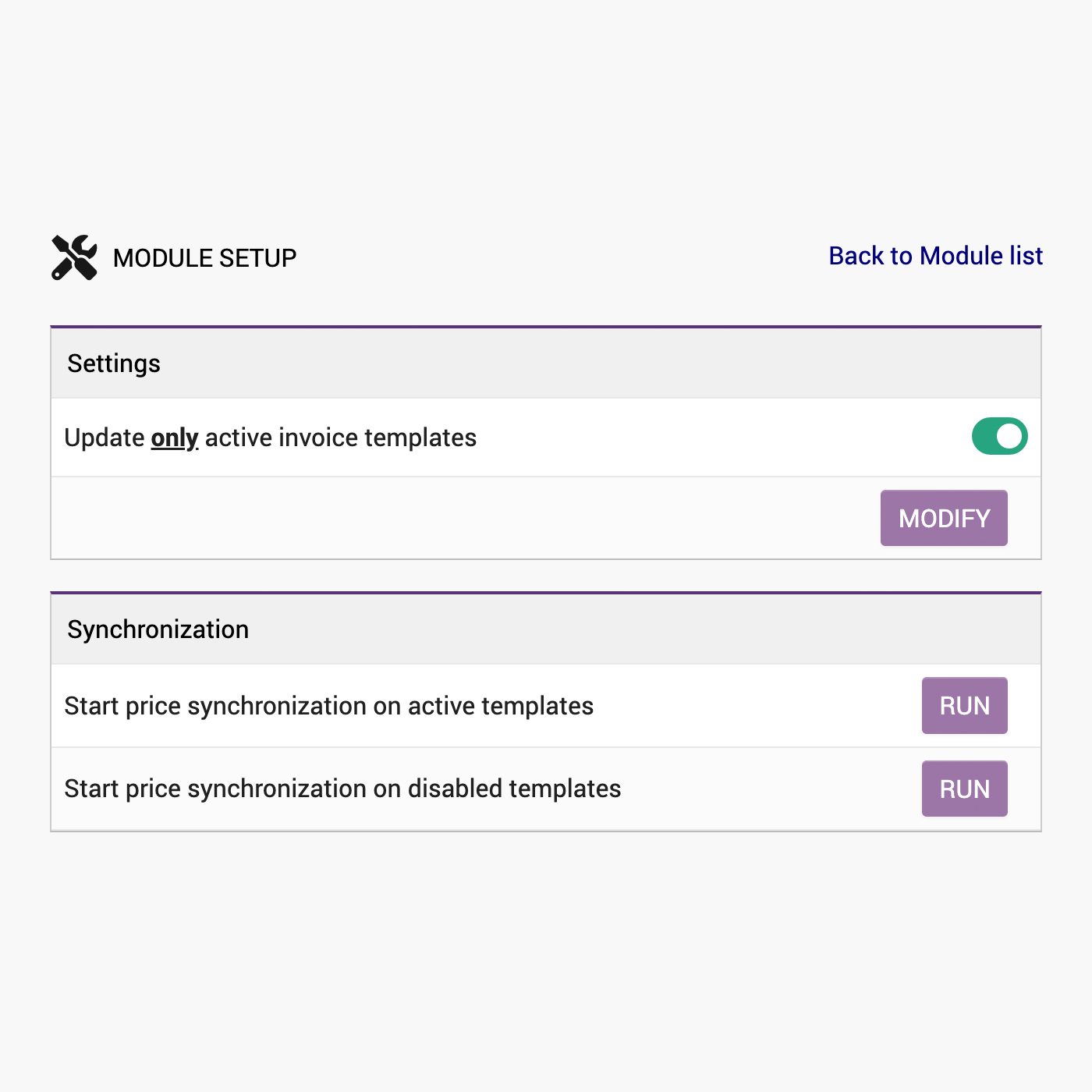 Save time and avoid billing errors! This module automatically updates your invoice templates (recurring, subscriptions) when the price of a product or service changes, including customer-specific prices.