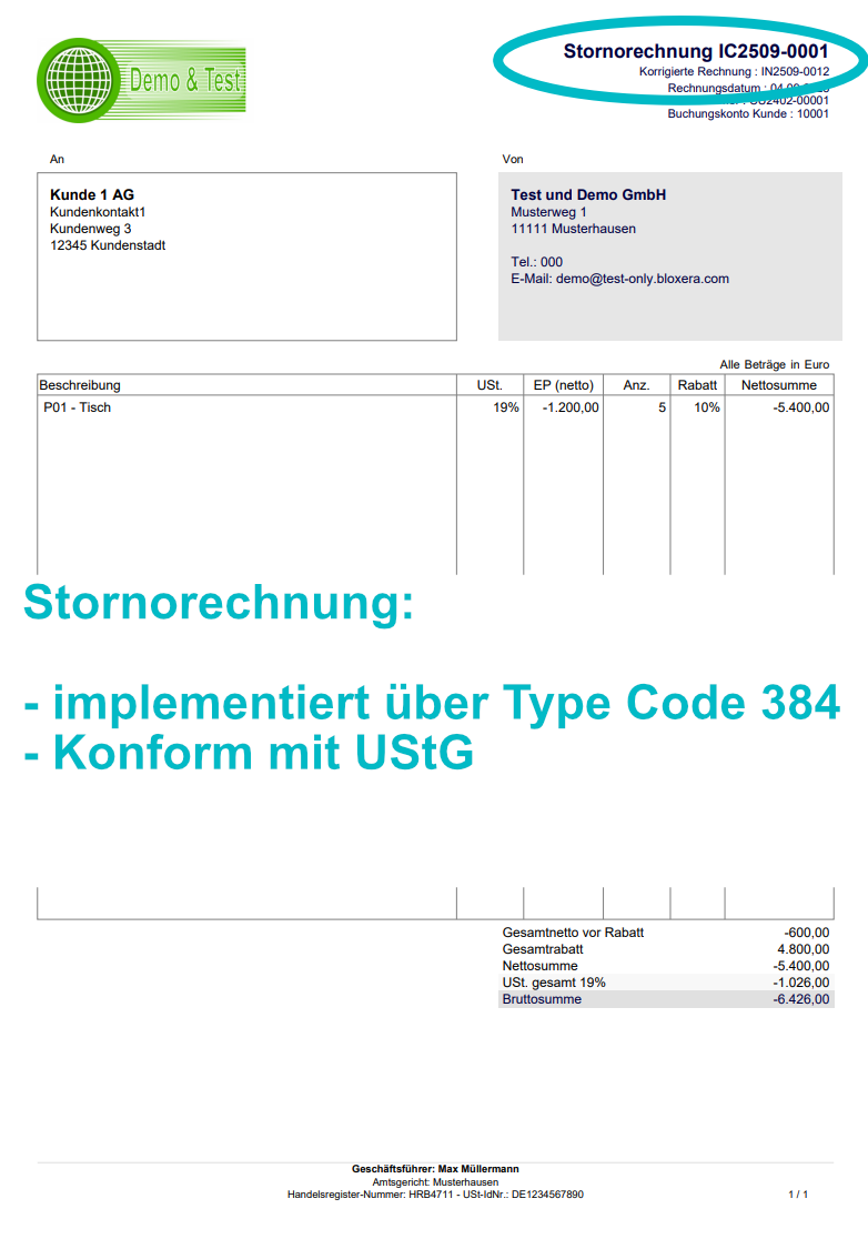 Always correct invoices: A special feature of this module is the optional integration of the official KoSIT validator for electronic invoices. Since customers are required to validate all incoming invoices, and payment obligations only begin upon receipt of a correct XML file, it is advisable to implement your own quality check for outgoing documents. Errors can have not only technical causes, but can also occur due to missing information in special configurations.
