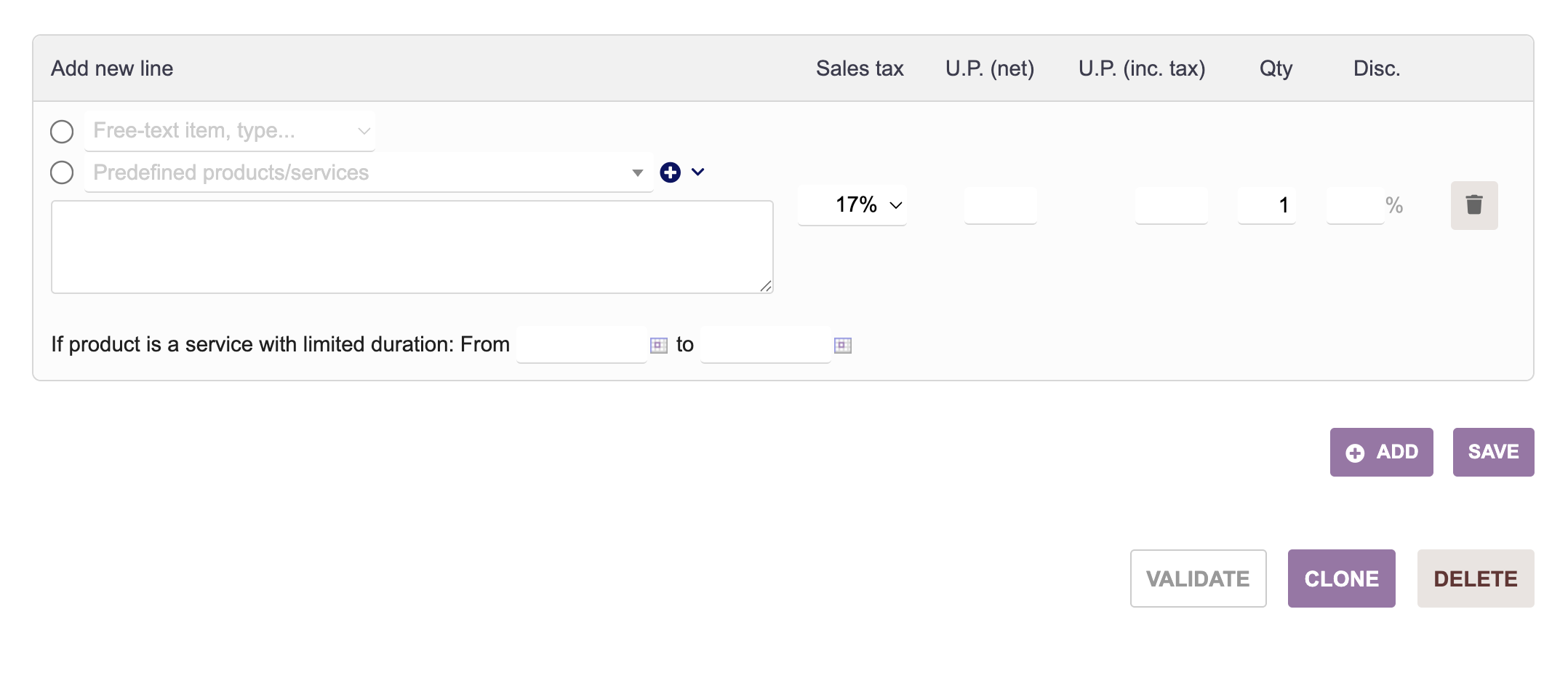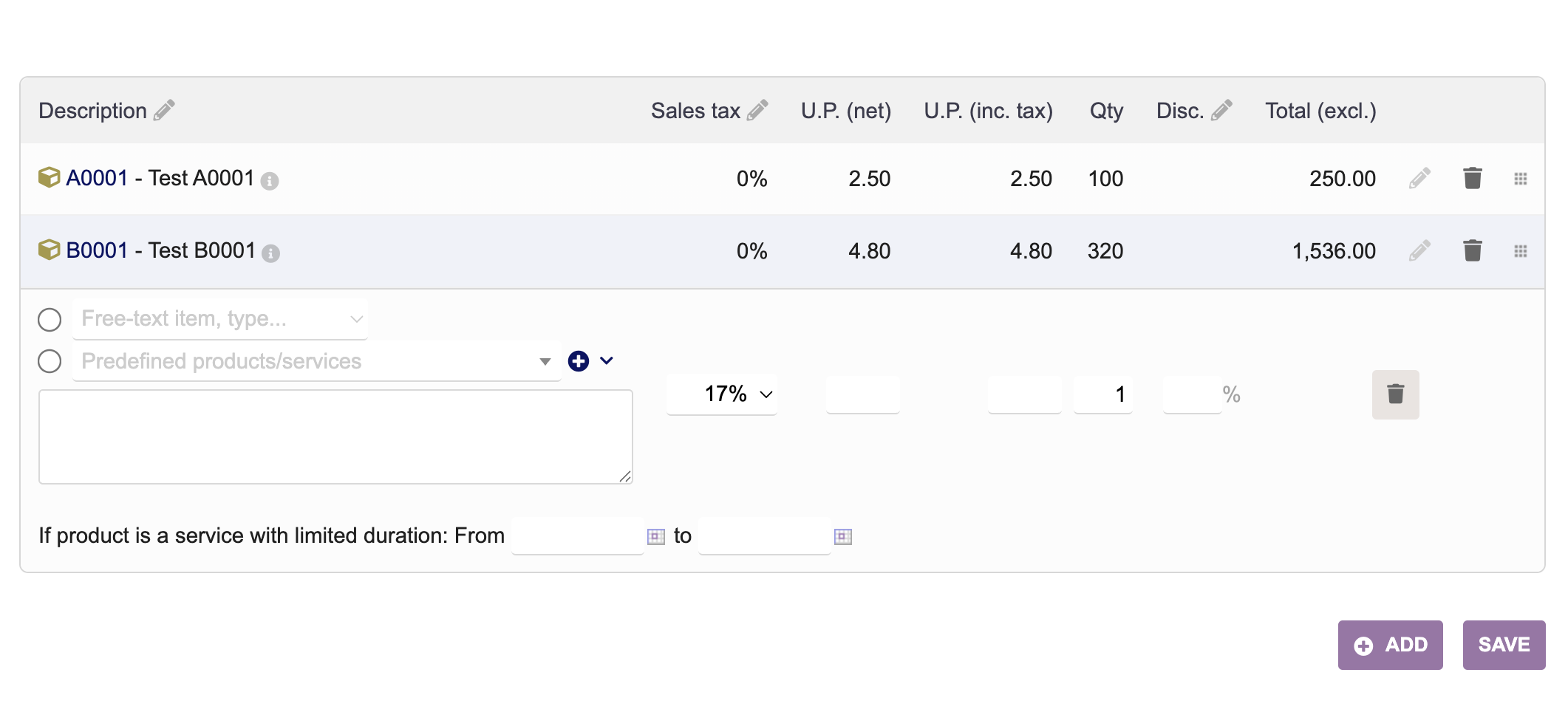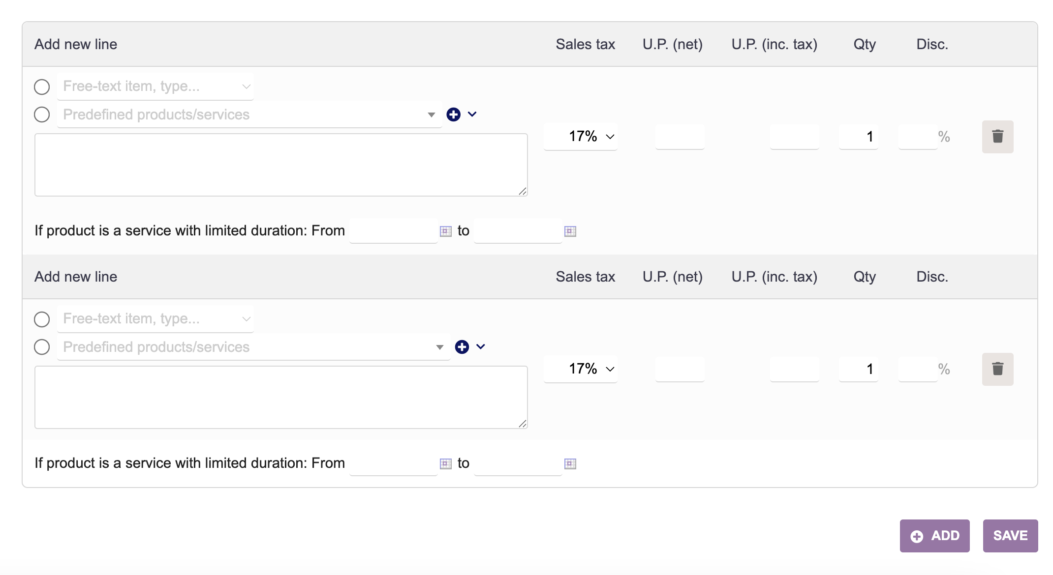 2. Find Buttons: Look for the new "Add" and "Save All" buttons near the product lines section