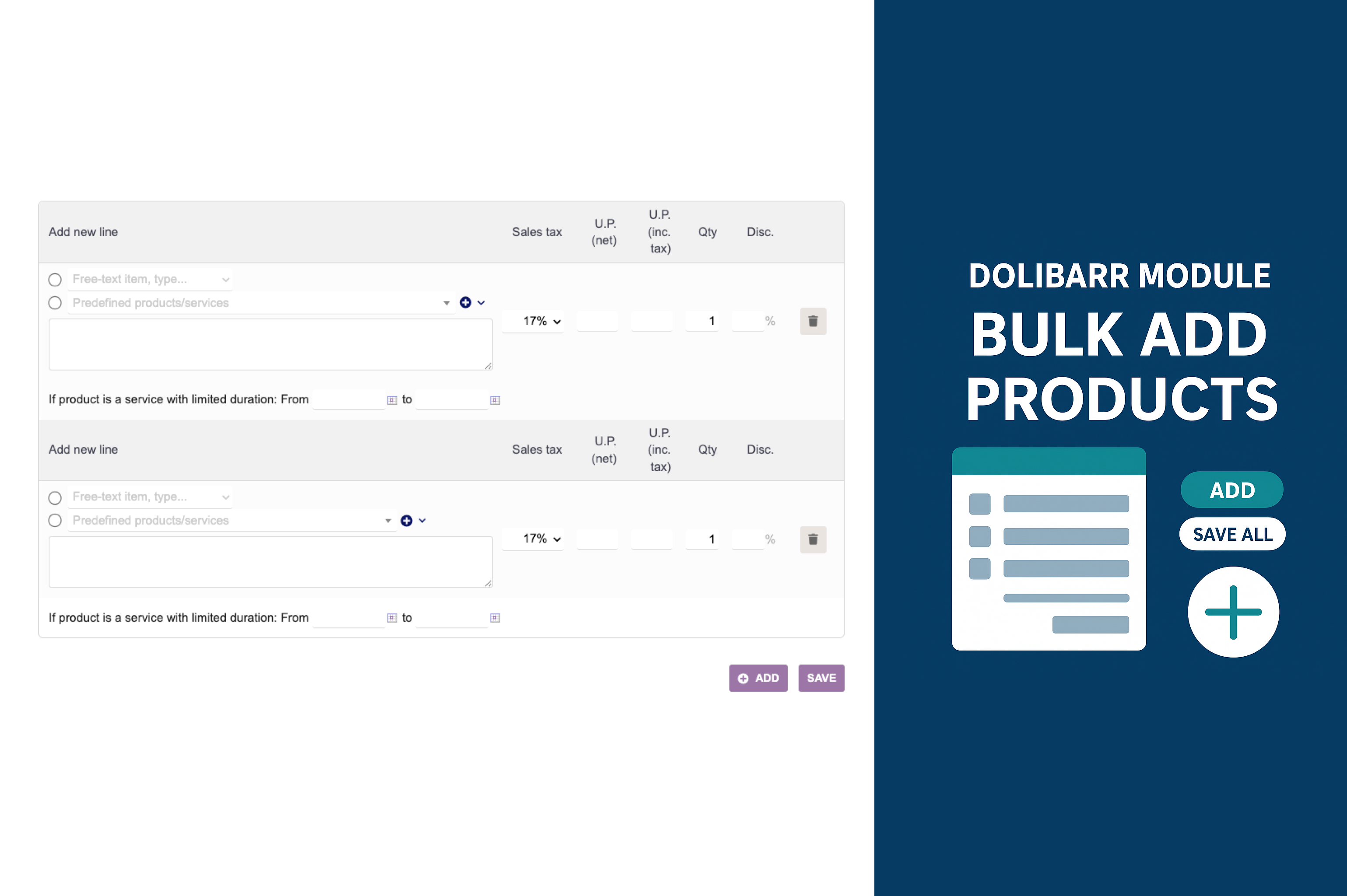 A powerful Dolibarr module that enhances document creation by allowing users to add multiple product lines quickly without page reloads.