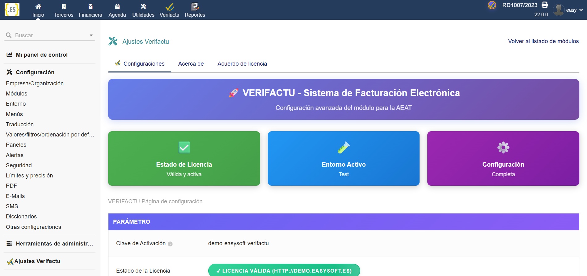 Cumple con la Ley 11/2021 (Ley Antifraude) y el Reglamento VeriFactu gracias a una integración nativa en Dolibarr, sencilla, rápida y 100% adaptada a las exigencias de la Agencia Tributaria (AEAT). Es necesario tener instalado nuestro módulo antifraude.