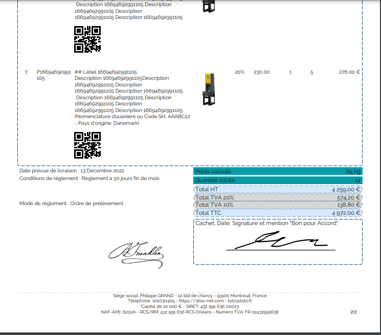 Véritable couteau Suisse pour personnaliser vos documents (commande, expedition, facture avec lcr, fichinter, project, propale, commandes et factures fournisseur...). L'administration du module vous permet de gérer votre charte graphique personnelle ainsi que de nombreux paramétrages.