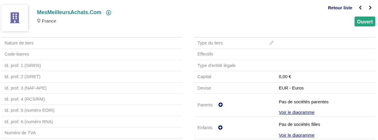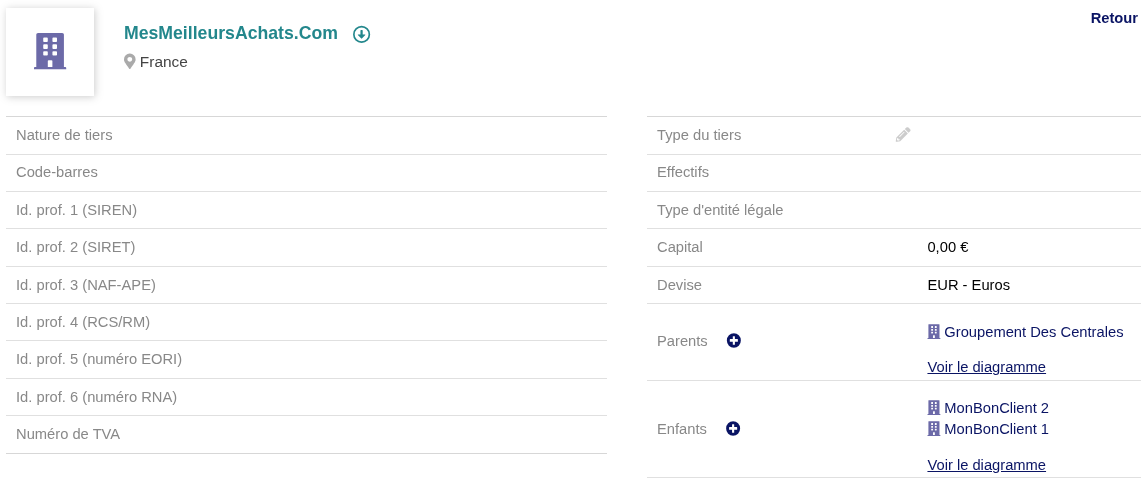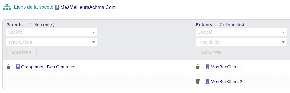 - Vorinstalliertes DoliLinks: Verwaltung hierarchischer Verknüpfungen zwischen Unternehmen