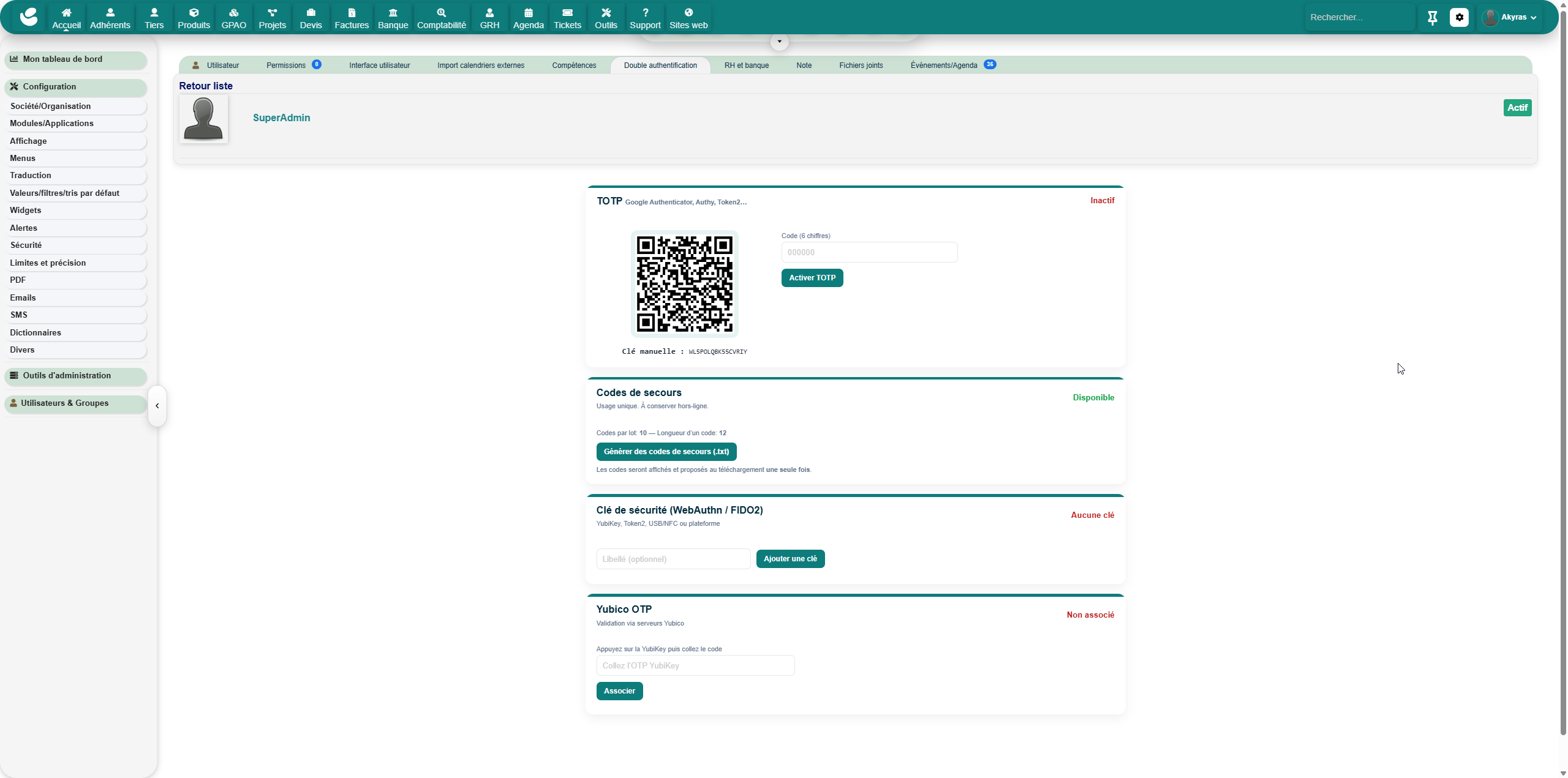 2fabyakyras brings next-gen MFA to Dolibarr: TOTP, FIDO2/WebAuthn passkeys, and YubiKey OTP. Guided enrollment, controlled “remember device,” and flexible enforcement per user or role.