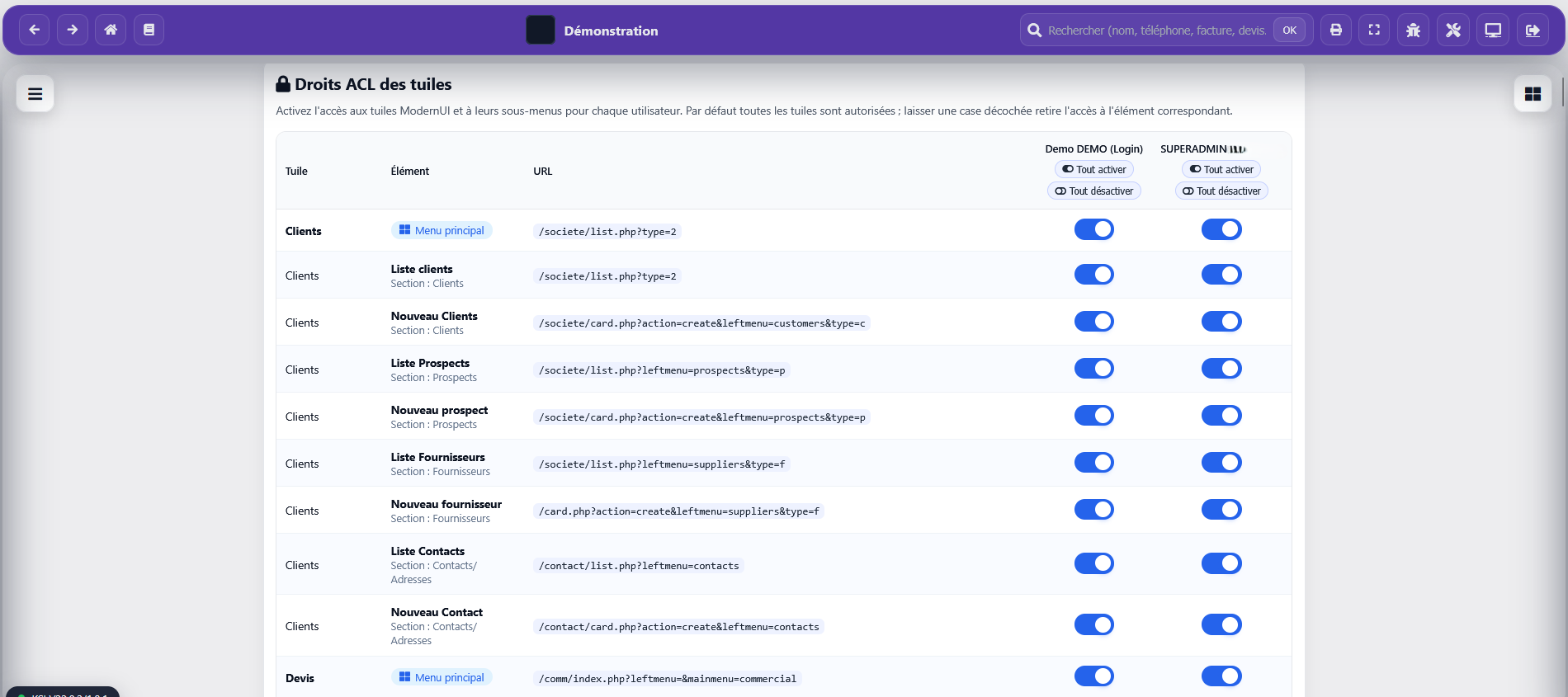 Wiki FR => https://wiki.dolibarr.org/index.php/Module_Modern_Template_FR