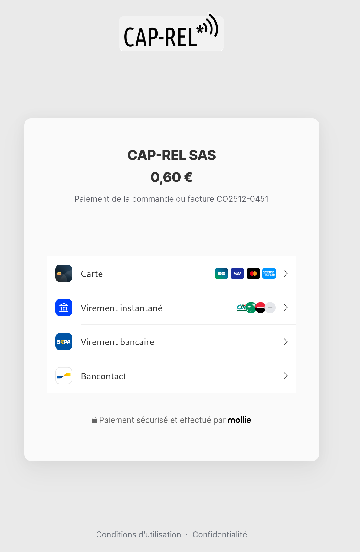 Paiement à la commande