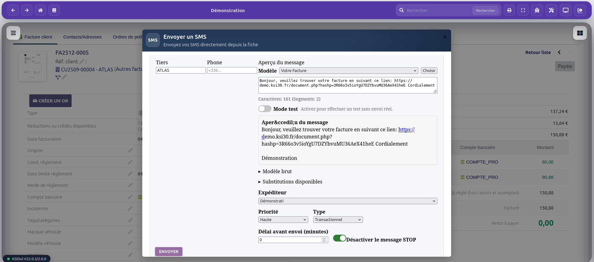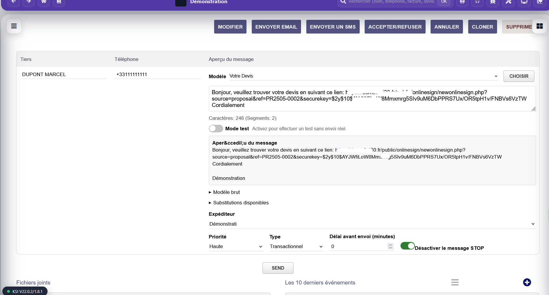 Send SMS via OVH for Dolibarr (notifications, document links…).