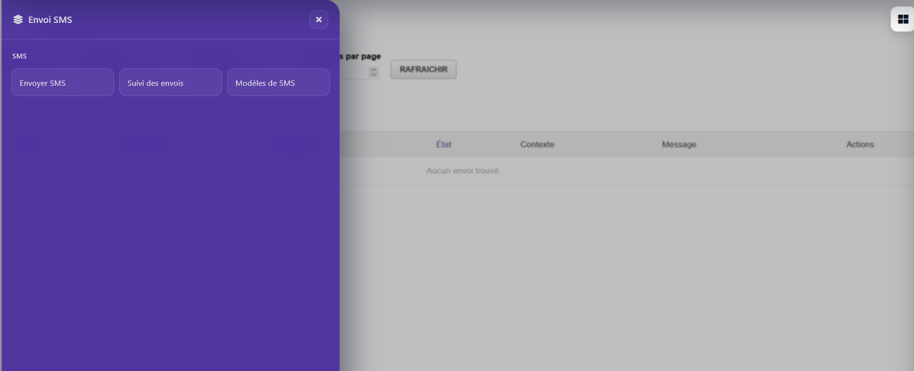 From cards (third party, invoice, proposal…), use the “Send SMS” action.