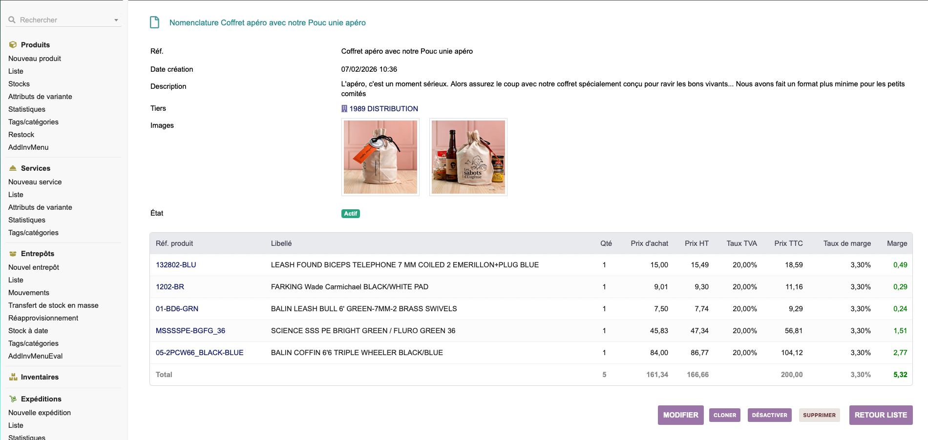 NomenclatureBOM est un module Dolibarr permettant de créer et gérer des nomenclatures de produits (Bill of Materials / BOM) et de les injecter facilement dans vos documents commerciaux.
