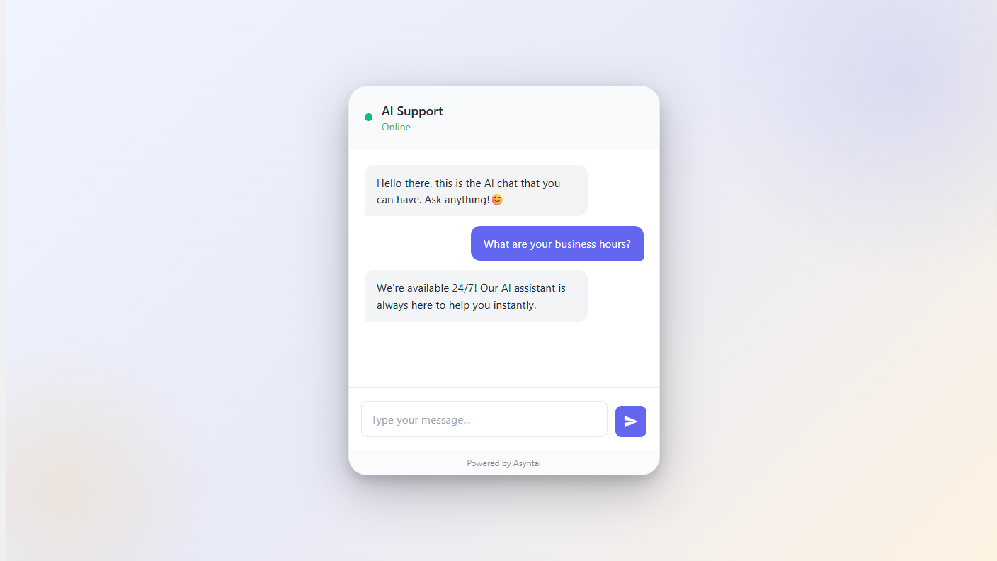 Email us at hello@asyntai.com or try our chatbot directly at asyntai.com/
