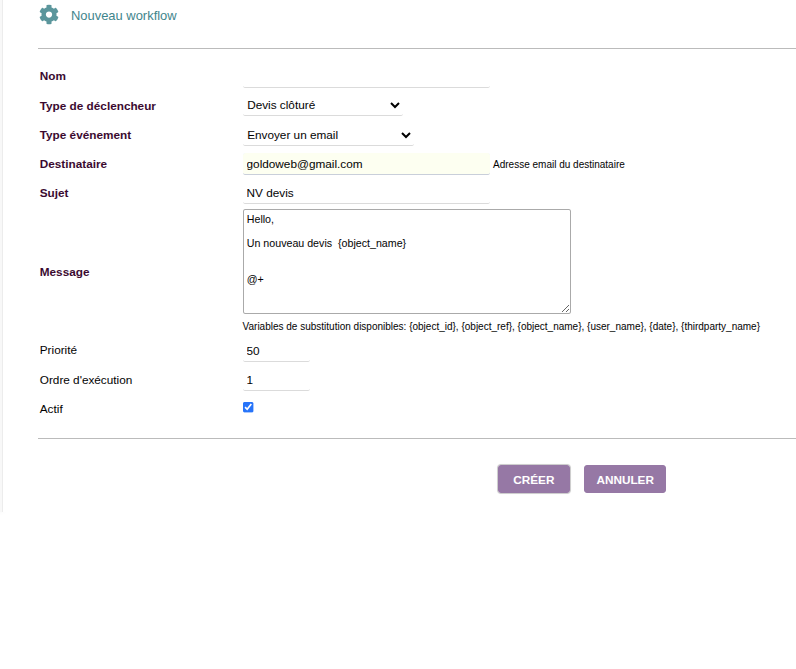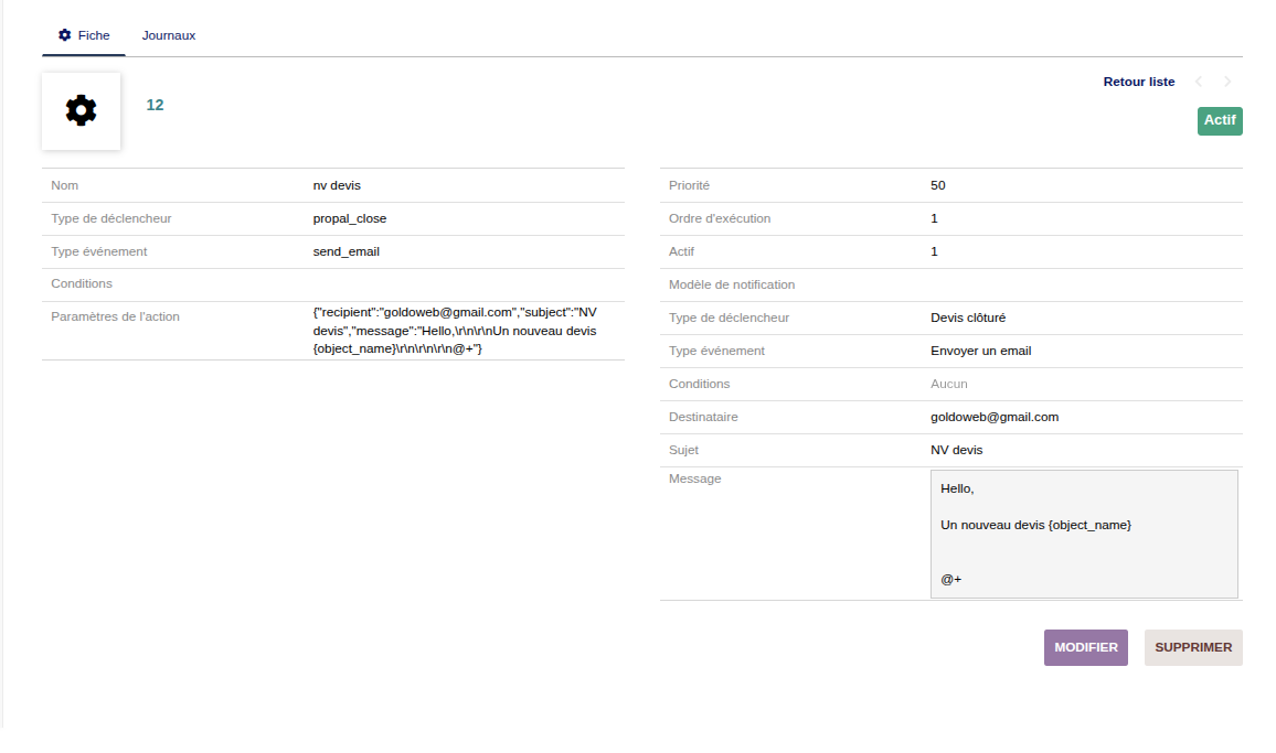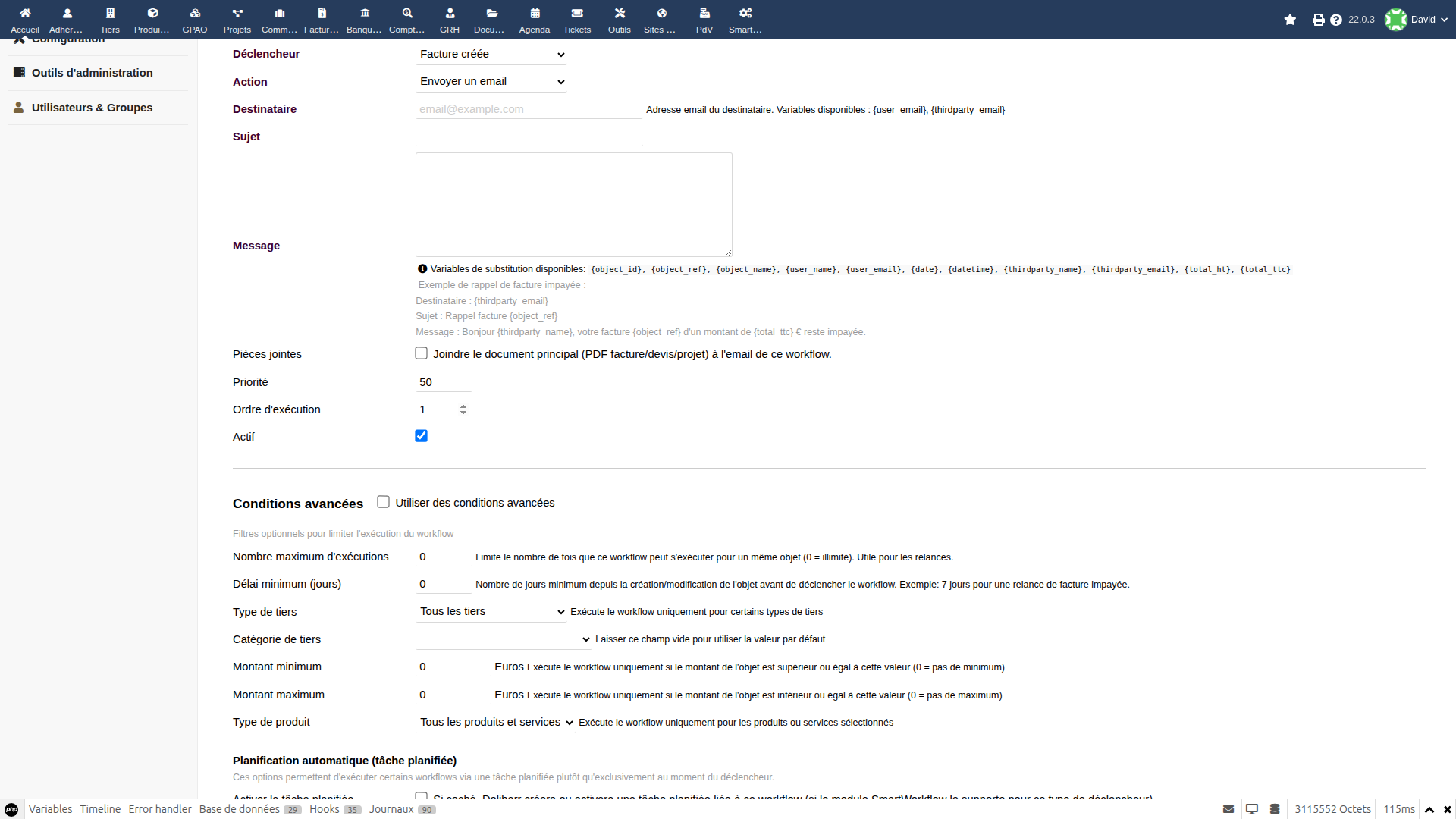 SmartWorkflow transforms your Dolibarr into a powerful automation platform. Define "If...Then..." rules to automate your daily processes: sending emails, creating documents, managing alerts, and much more.