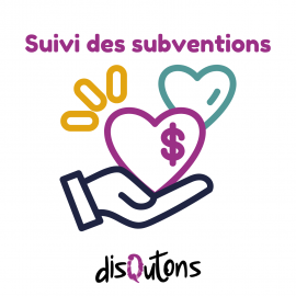 Suivi des subventions, demandes de financements, financeurs et paiements Possibilité d'ajouter des documents : demande, notification, convention, bilan, etc. Suivi des différents statuts : non déposé, déposé, accepté, refusé, financé, bilan déposé Statistiques par année, financeurs et groupe de financeurs